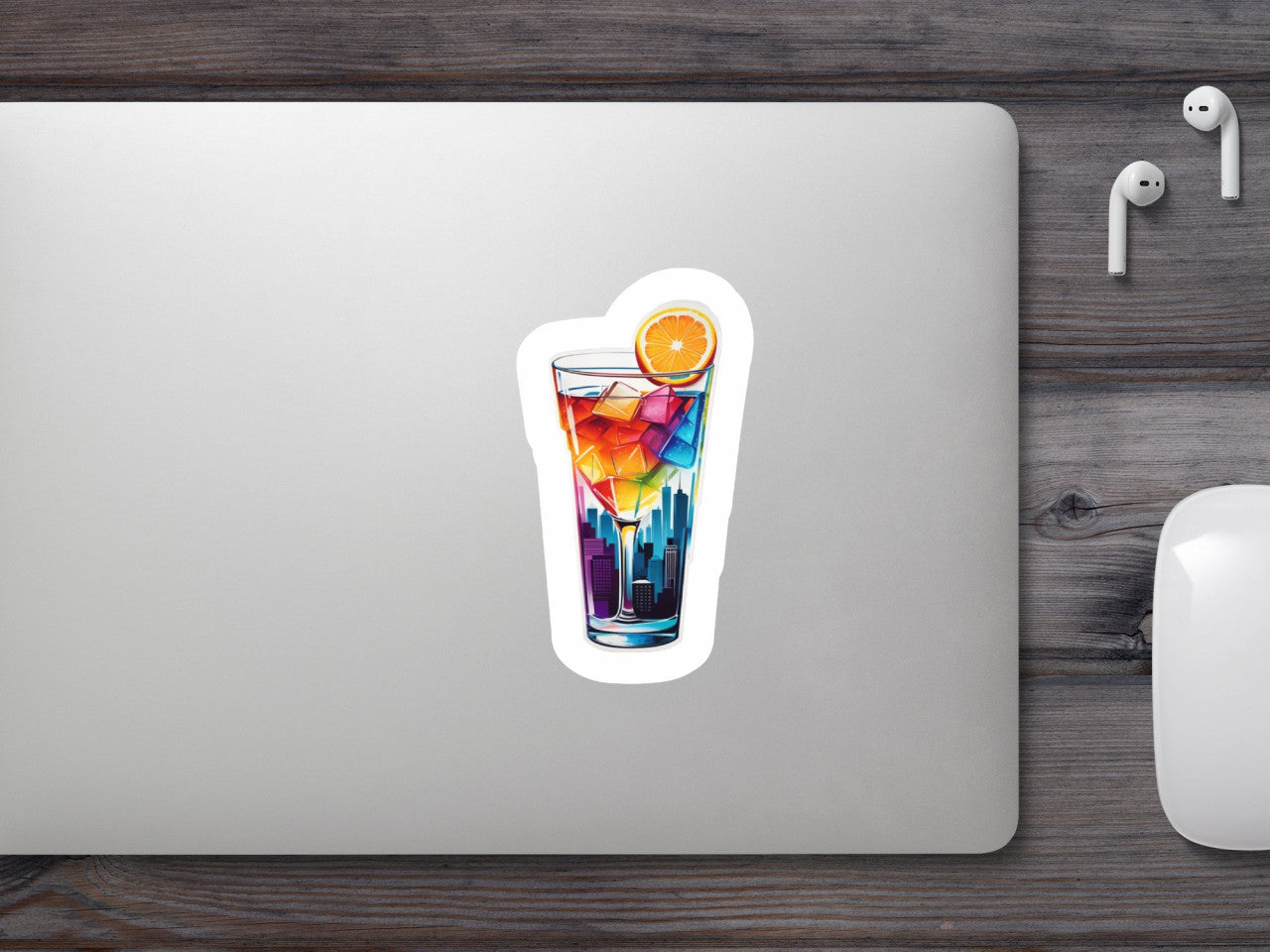 Set 3 bucati, Sticker decorativ, Cocktail Manhattan cu gheata, Rezistent la apa, NO867, 6 cm, Multicolor
