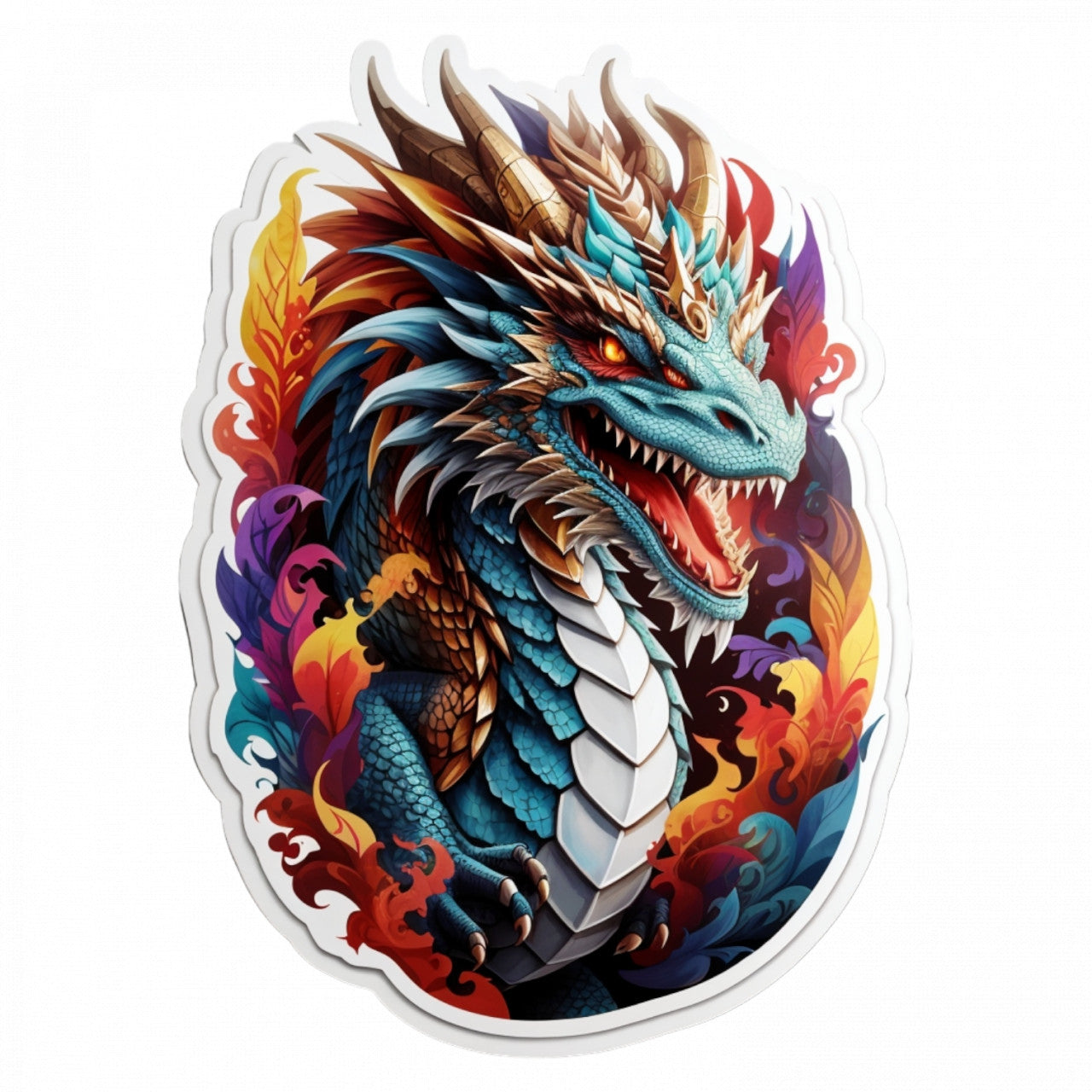 Set 3 bucati, Sticker decorativ, Cragonul cu colti, Rezistent la apa, NO492, 6 cm, Multicolor