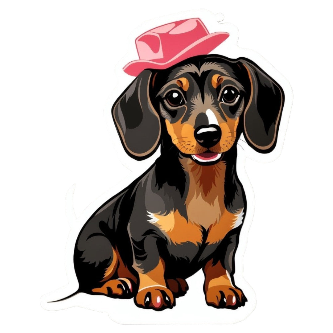 Set 3 bucati, Sticker decorativ, Dachshud cu palarie, Rezistent la apa, NO2036, 6 cm, Multicolor