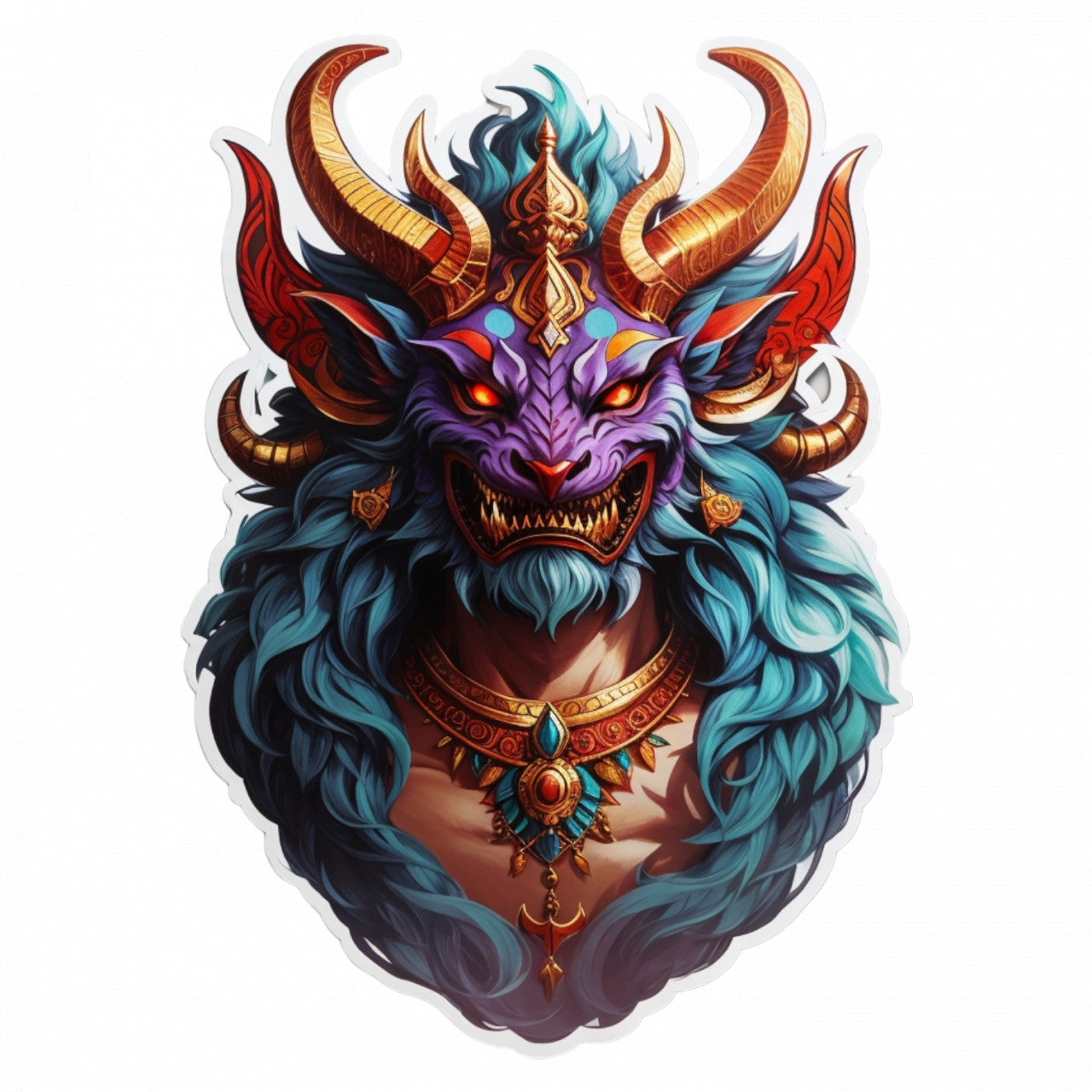 Set 3 bucati, Sticker decorativ, Demonul Paimon cu coarne si platosa, Rezistent la apa, NO1000, 6 cm, Multicolor
