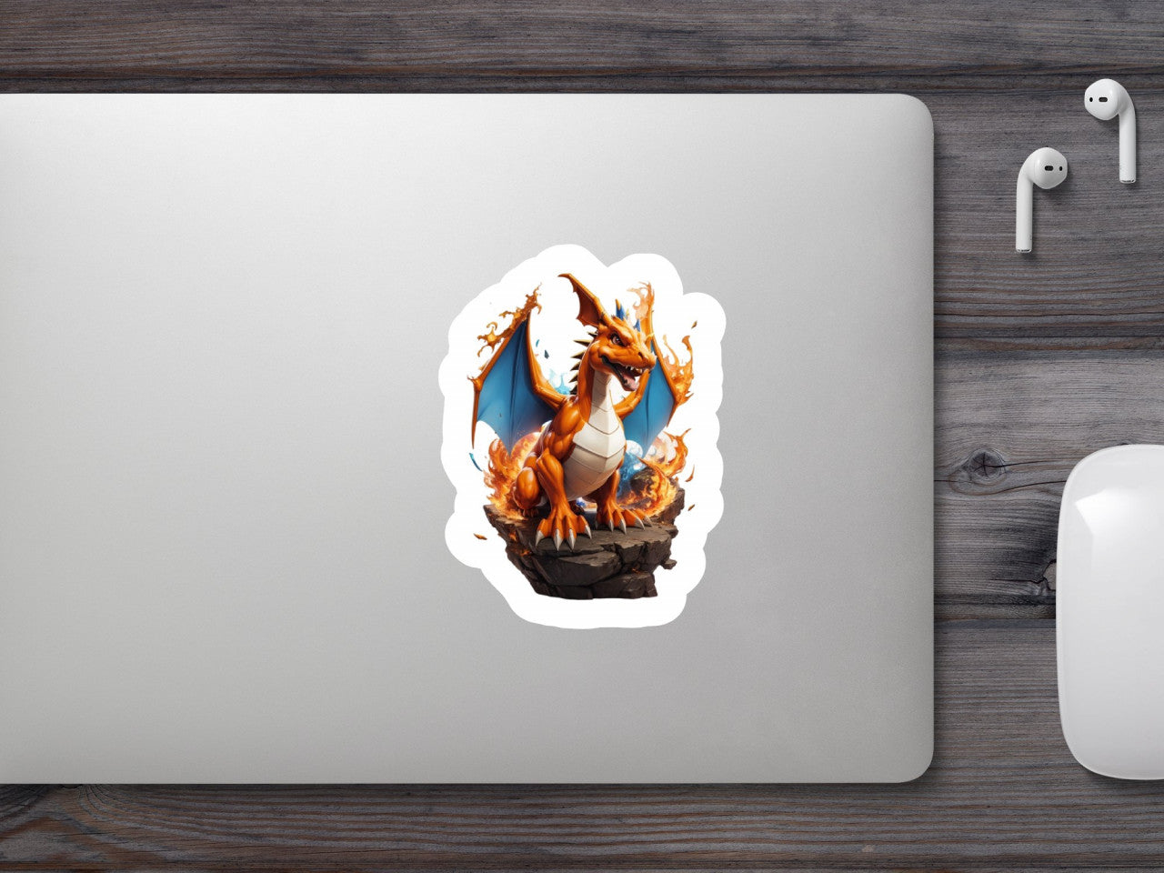 Set 3 bucati, Sticker decorativ, Dragon pokemon pe pietre, Rezistent la apa, NO2017, 6 cm, Multicolor