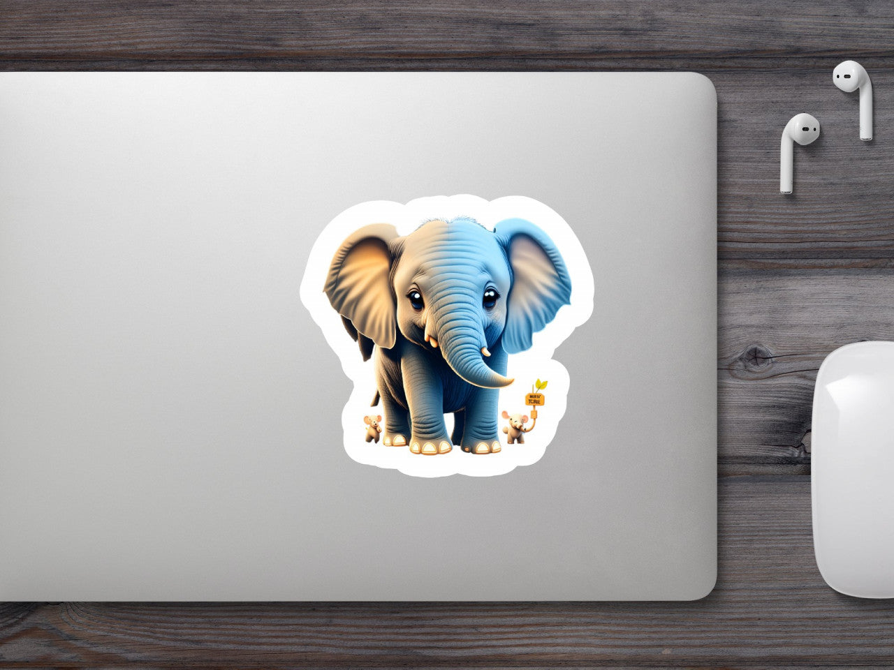 Set 3 bucati, Sticker decorativ, Elefantul cu trompa ascutita, Rezistent la apa, NO1959, 6 cm, Multicolor