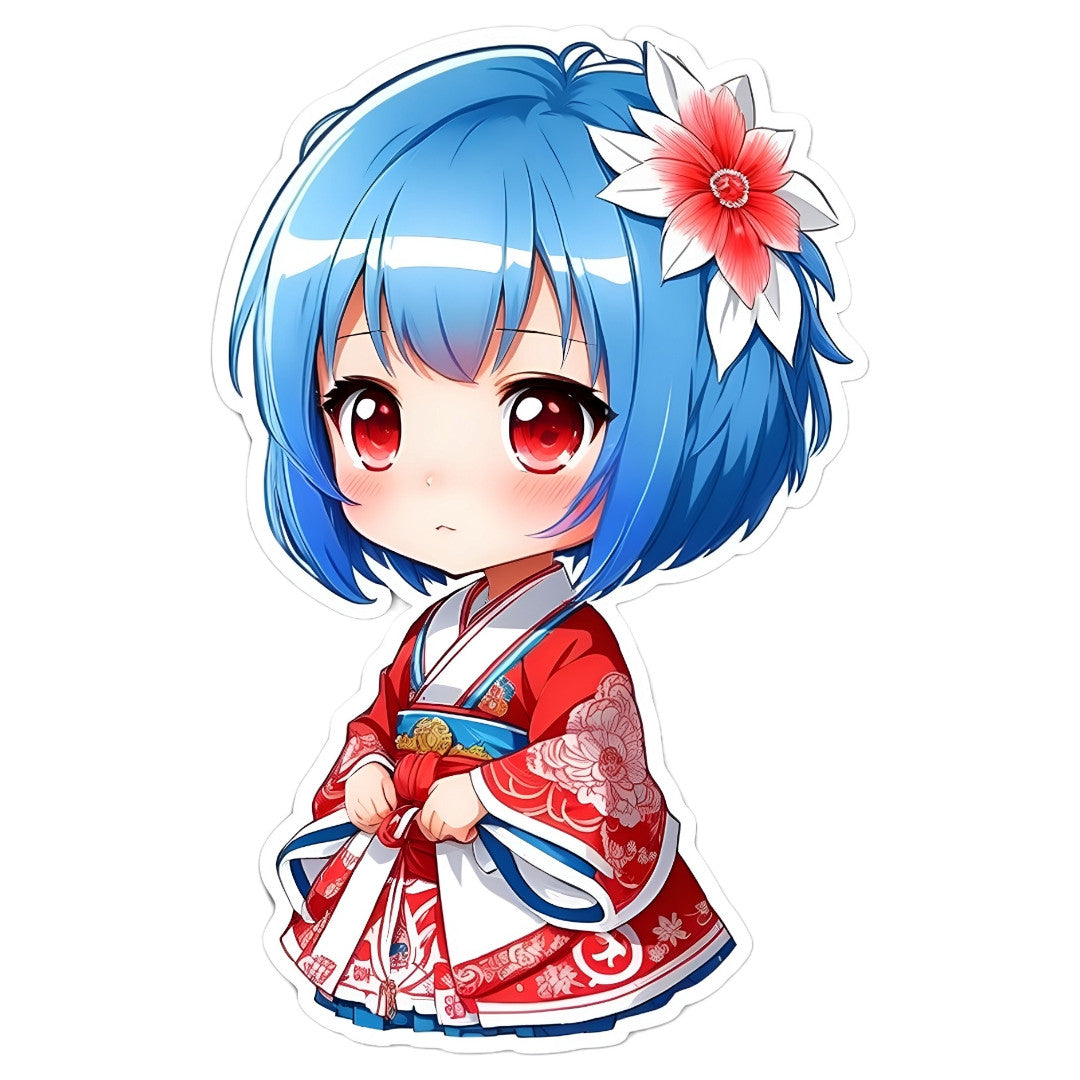Set 3 bucati, Sticker decorativ, Fetita din Japonia, Rezistent la apa, NO1613, 6 cm, Multicolor