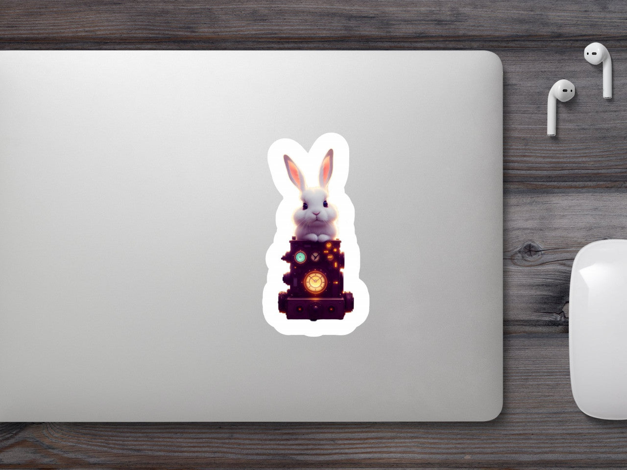 Set 3 bucati, Sticker decorativ, Iepuras steampunk, Rezistent la apa, NO1668, 6 cm, Multicolor