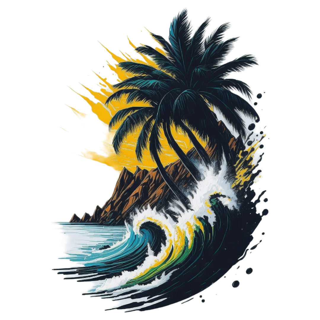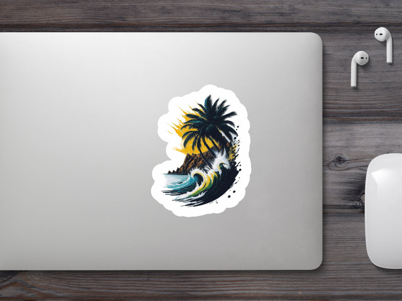 Set 3 bucati, Sticker decorativ, Palmieri loviti de val, Rezistent la apa, NO1490, 6 cm, Multicolor