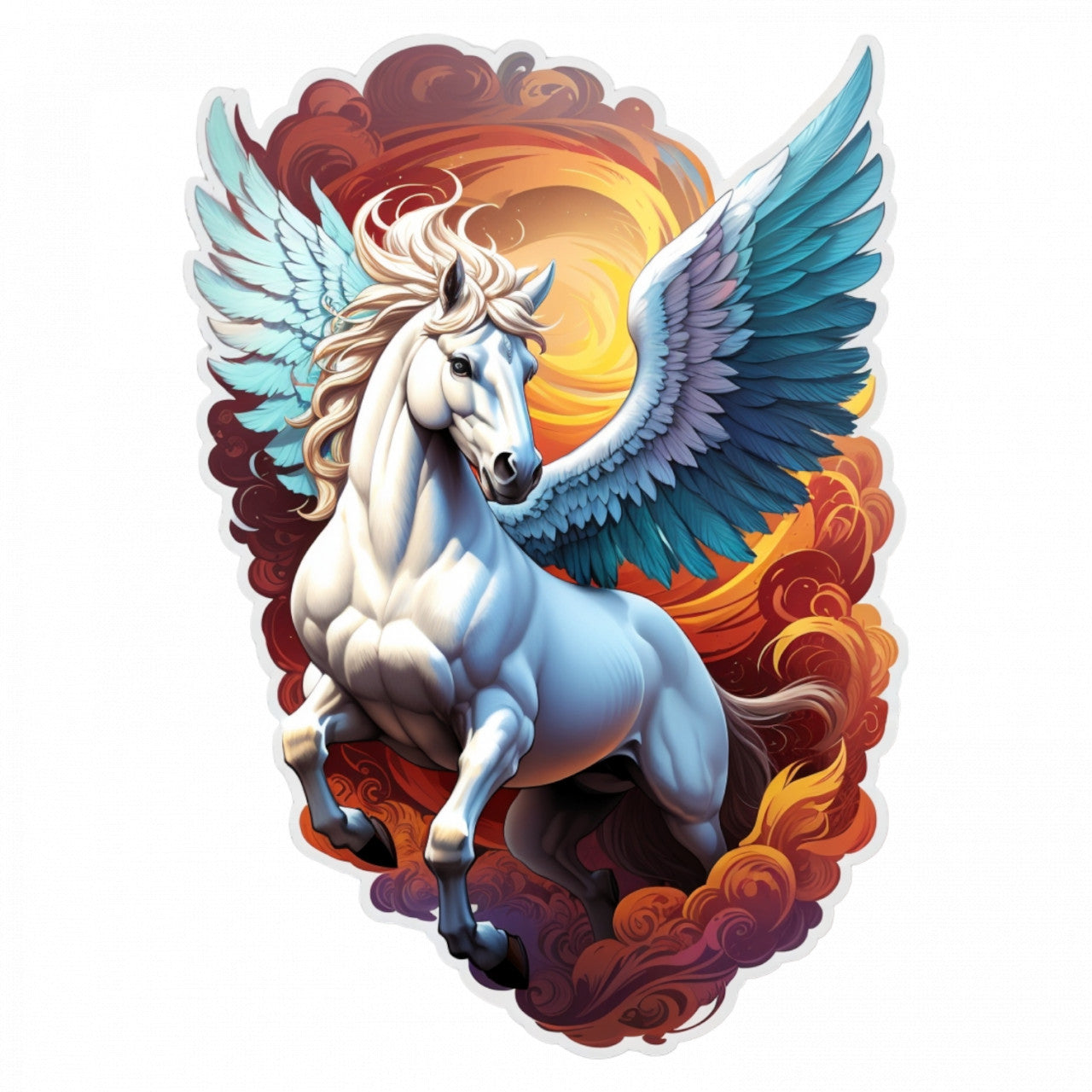 Set 3 bucati, Sticker decorativ, Pegasus personaj mitologic, Rezistent la apa, NO1025, 6 cm, Multicolor