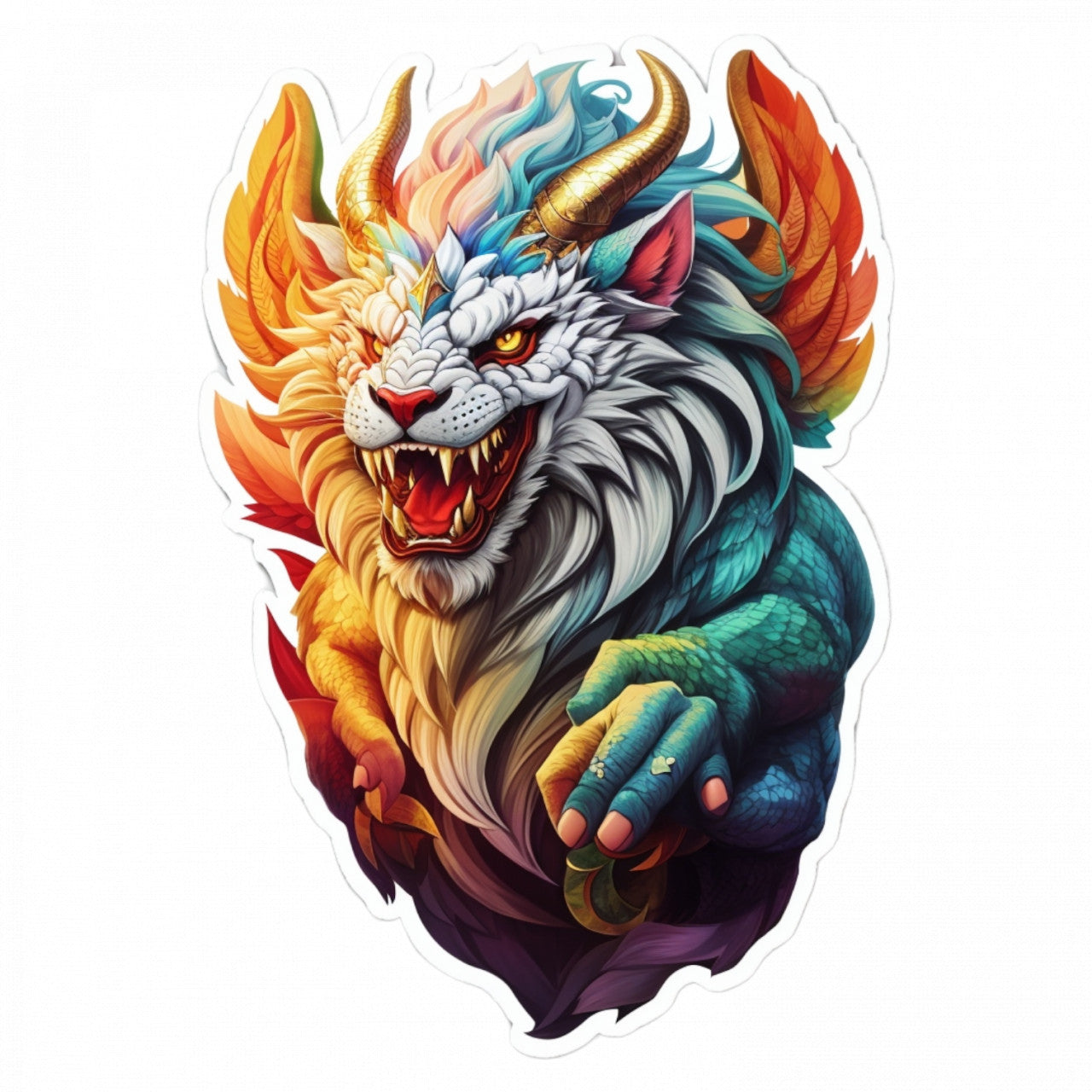 Set 3 bucati, Sticker decorativ, Personaj mitologic Himera cap, Rezistent la apa, NO374, 6 cm, Multicolor