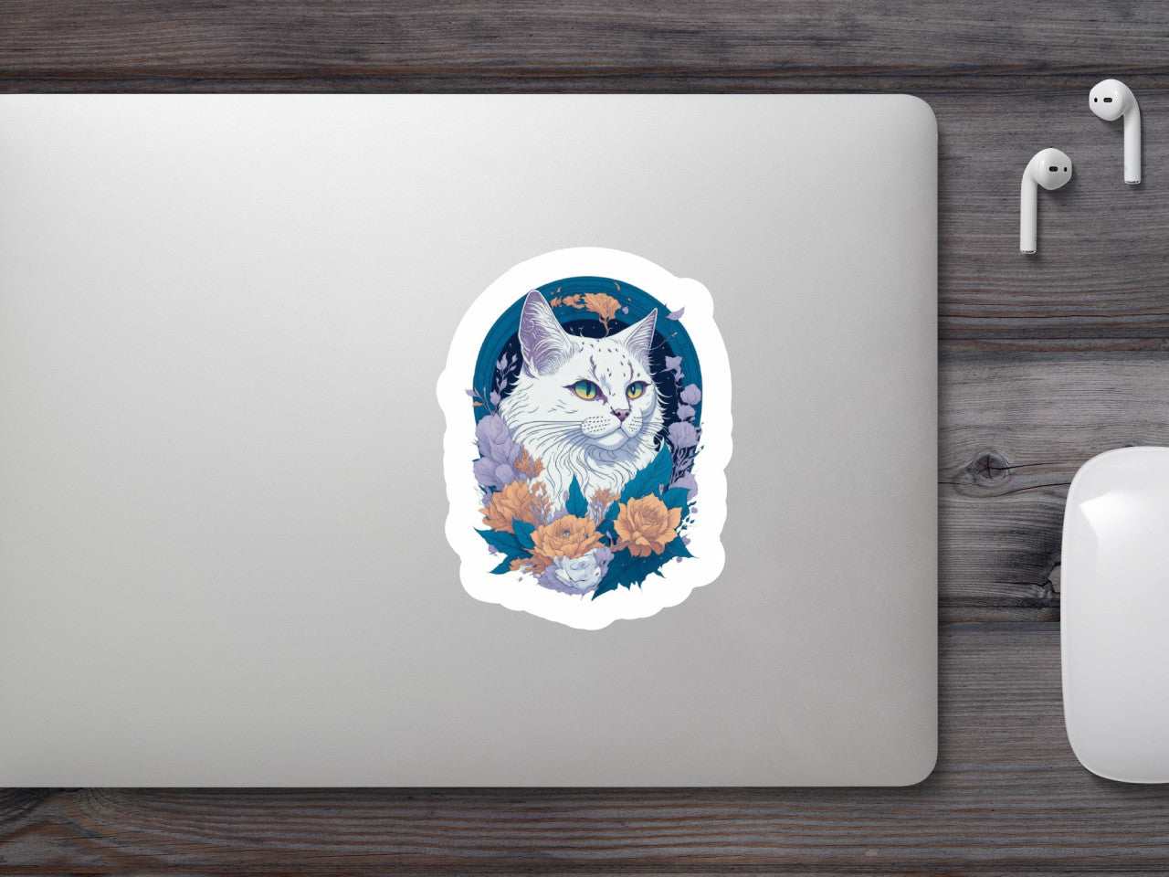 Set 3 bucati, Sticker decorativ, Pisica alba, Rezistent la apa, NO1548, 6 cm, Multicolor