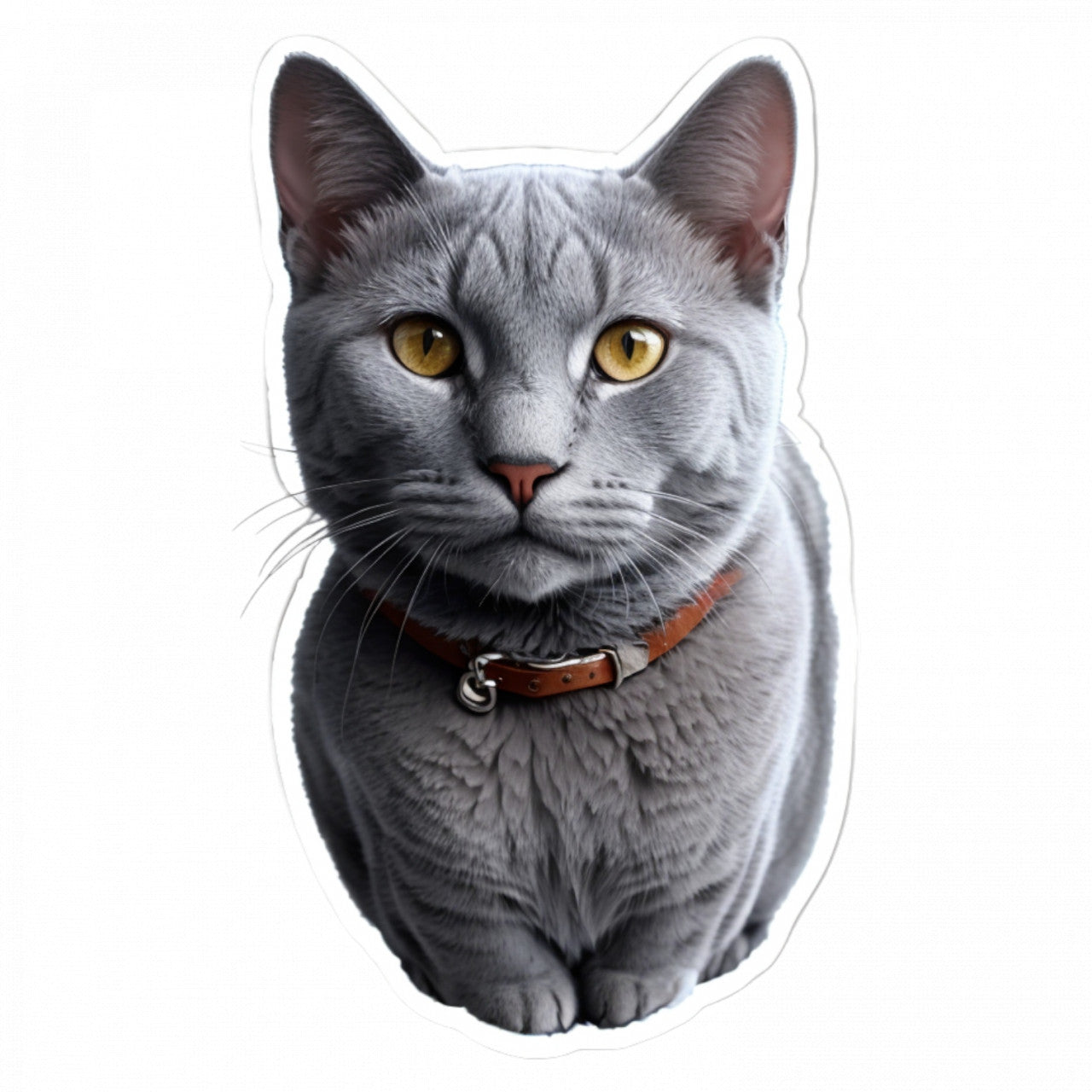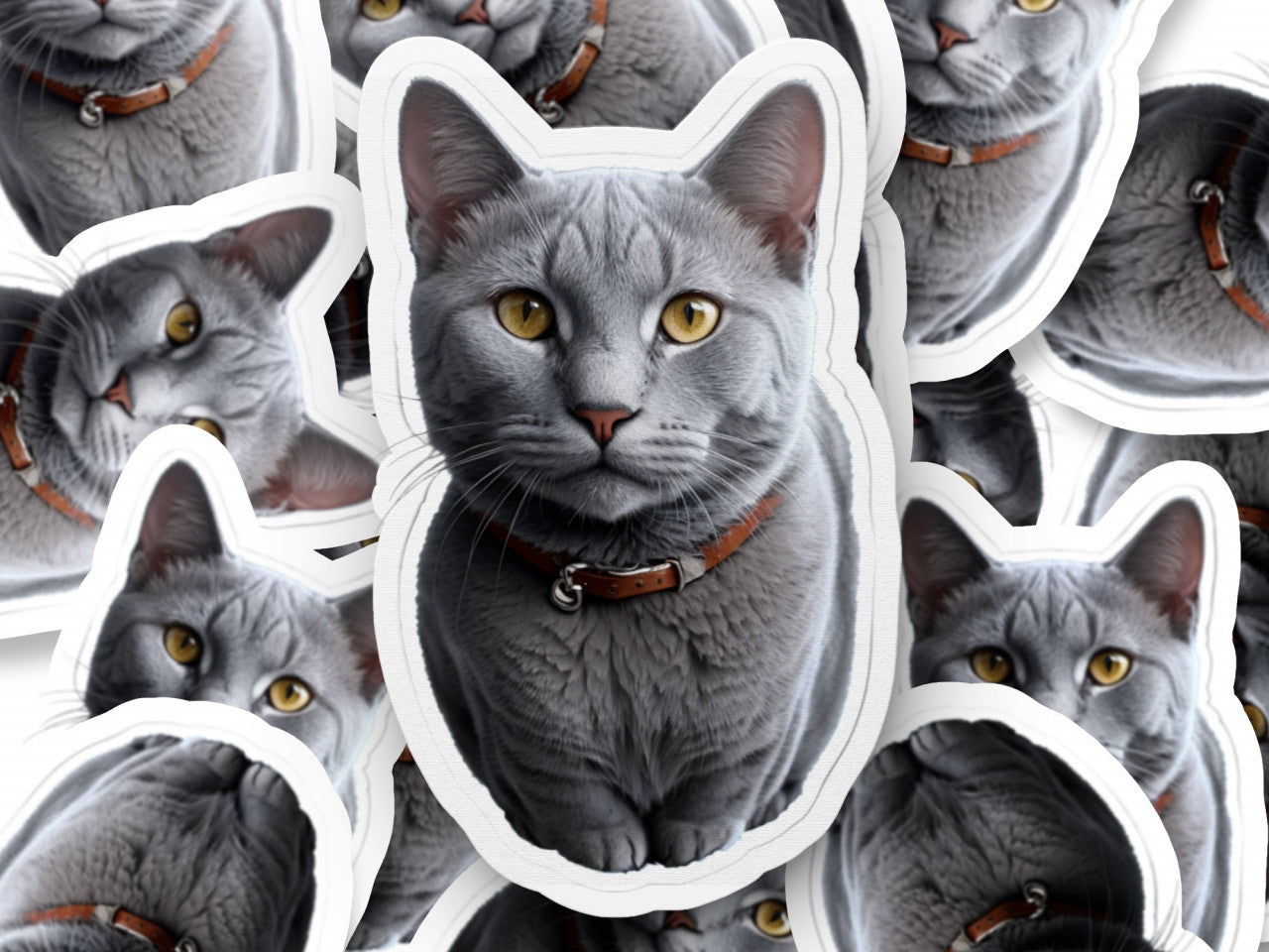 Set 3 bucati, Sticker decorativ, Pisica albastru de rusia cu zgarda, Rezistent la apa, NO1159, 6 cm, Multicolor