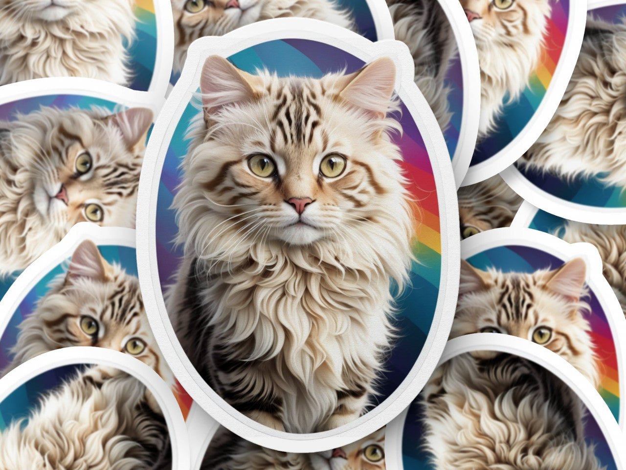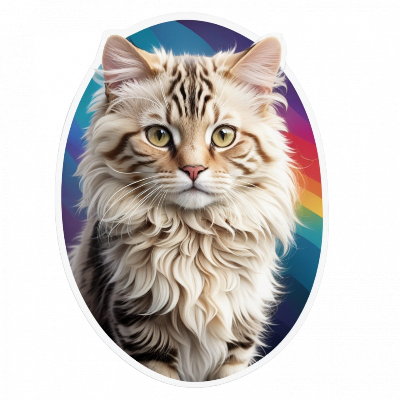 Set 3 bucati, Sticker decorativ, Pisica American Curl cu mustati lungi, Rezistent la apa, NO202, 6 cm, Multicolor