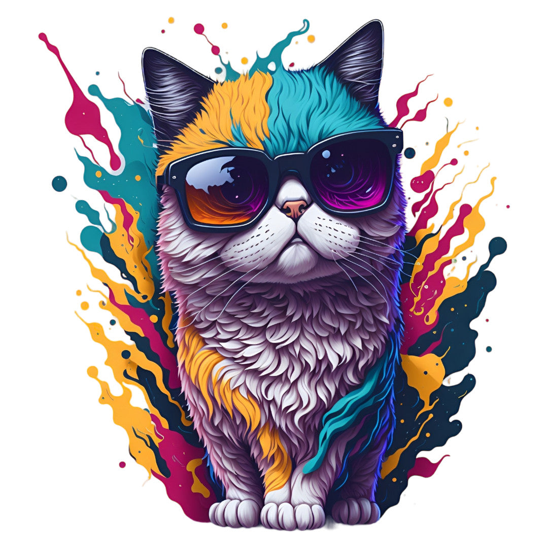 Set 3 bucati, Sticker decorativ, Pisica cu ochelari de soare, Rezistent la apa, NO1596, 6 cm, Multicolor