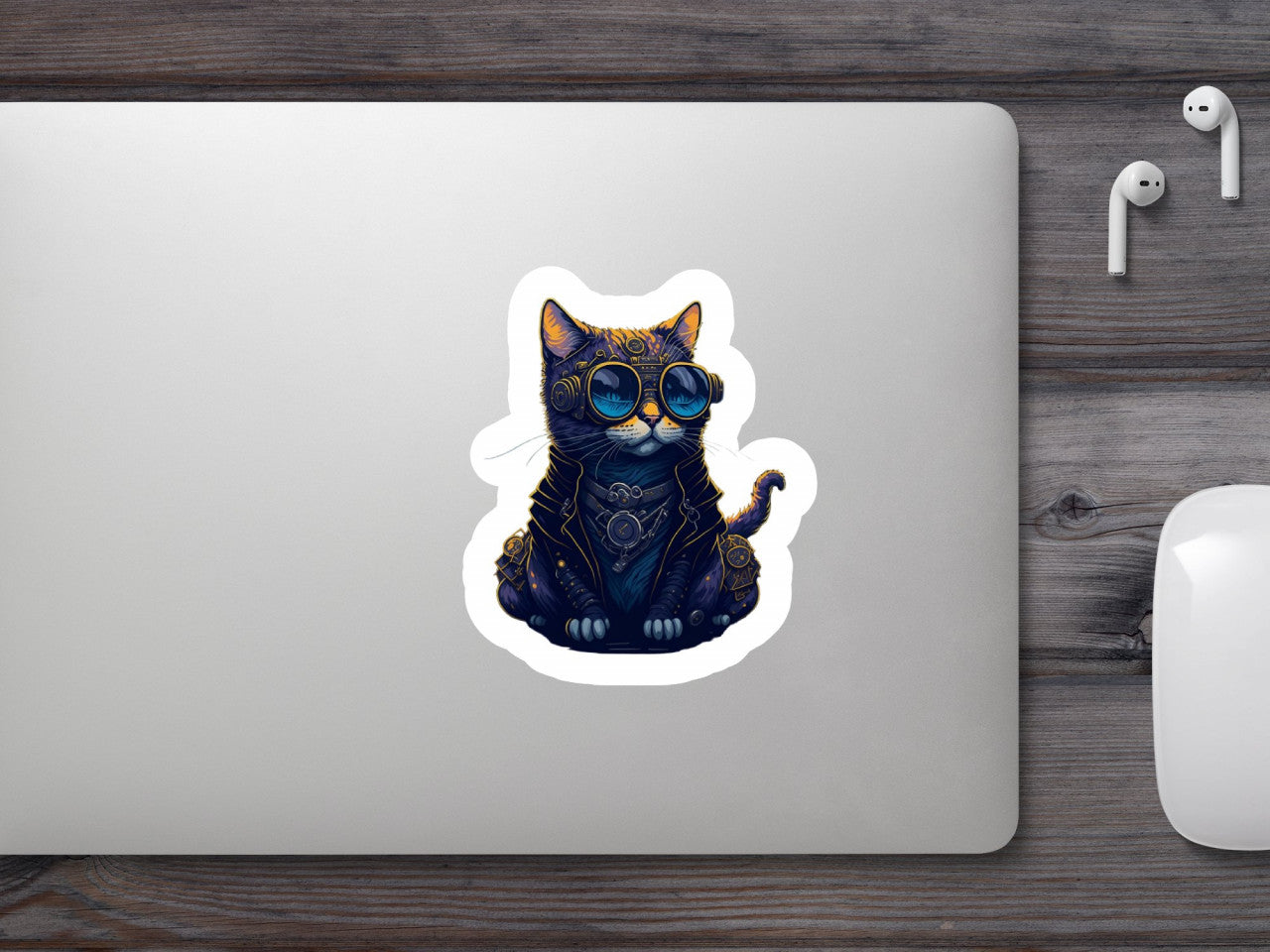 Set 3 bucati, Sticker decorativ, Pisica cu ochelari de soare, Rezistent la apa, NO1865, 6 cm, Multicolor