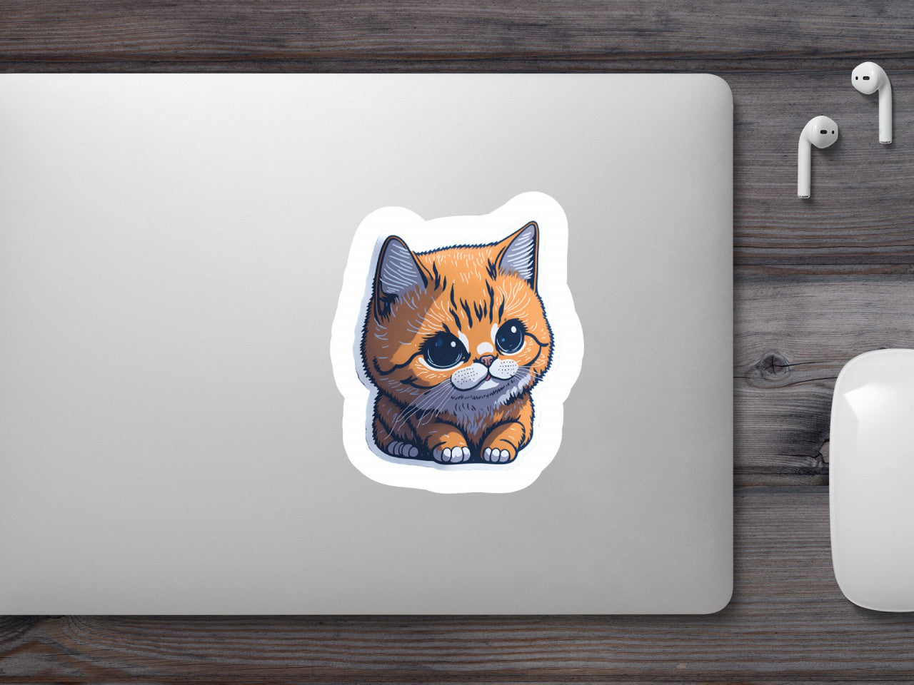 Set 3 bucati, Sticker decorativ, Pisica cu ochi mari, Rezistent la apa, NO1877, 6 cm, Multicolor