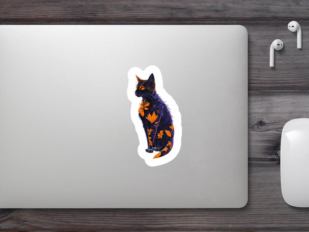 Set 3 bucati, Sticker decorativ, Pisica din frunze, Rezistent la apa, NO1576, 6 cm, Multicolor