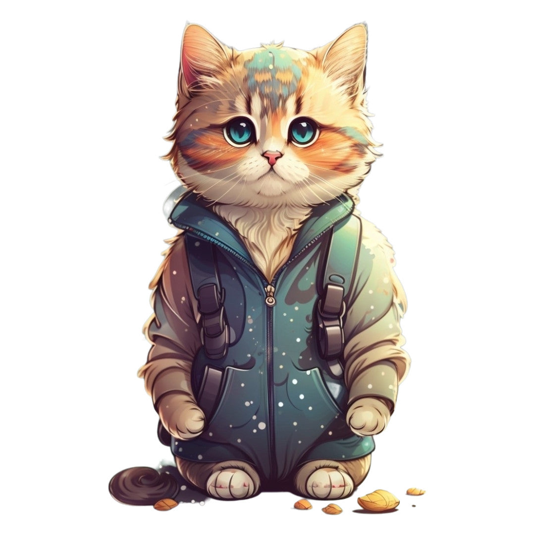 Set 3 bucati, Sticker decorativ, Pisica in combinezon, Rezistent la apa, NO2221, 6 cm, Multicolor
