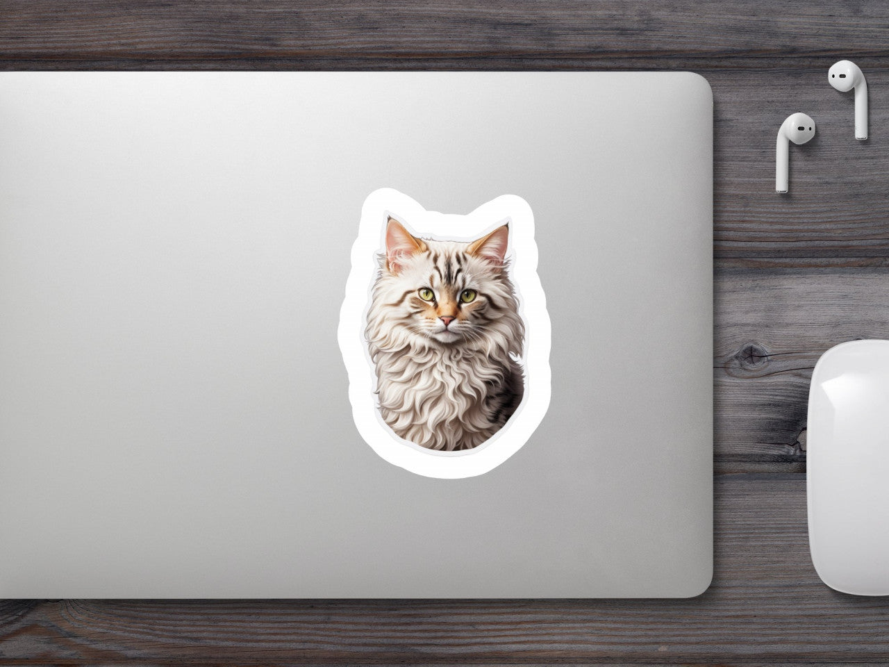 Set 3 bucati, Sticker decorativ, Pisica Laperm, Rezistent la apa, NO780, 6 cm, Multicolor