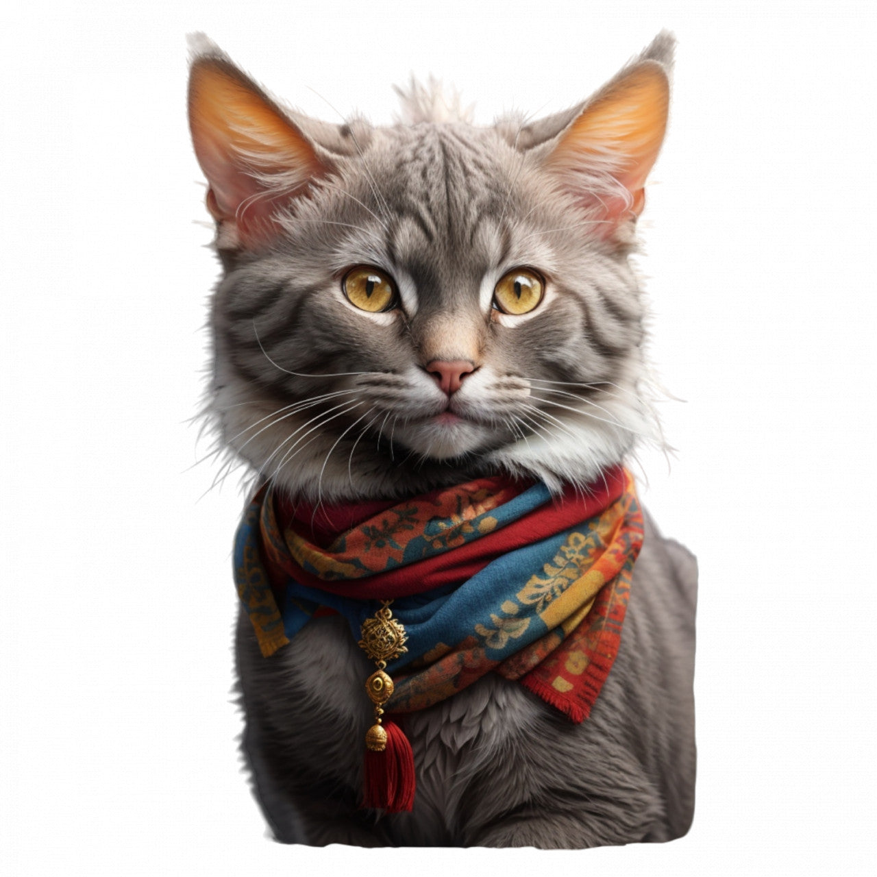Set 3 bucati, Sticker decorativ, Pisica Lykoi cu bandana, Rezistent la apa, NO837, 6 cm, Multicolor