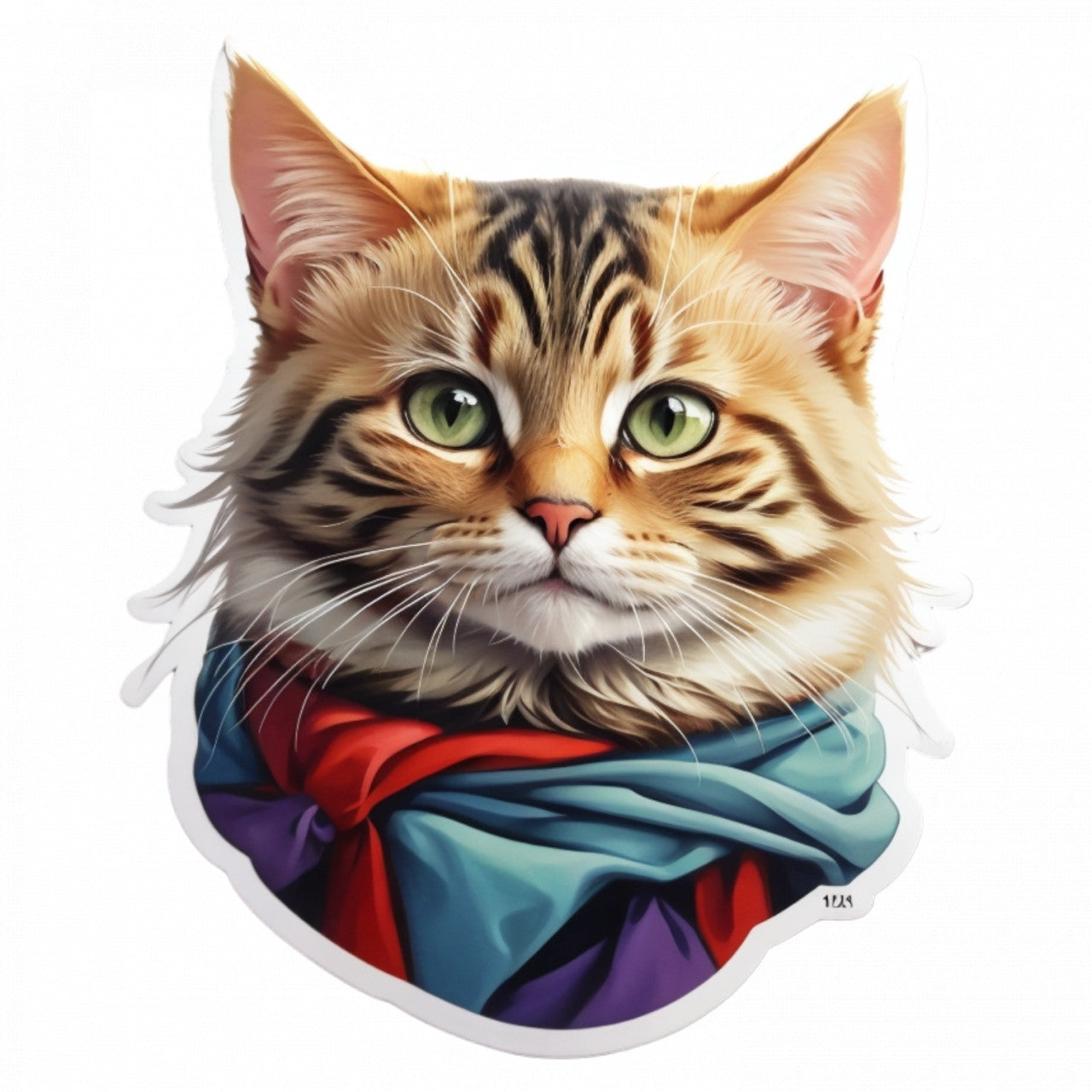 Set 3 bucati, Sticker decorativ, Pisica Pixie bob cu esarfa, Rezistent la apa, NO1077, 6 cm, Multicolor