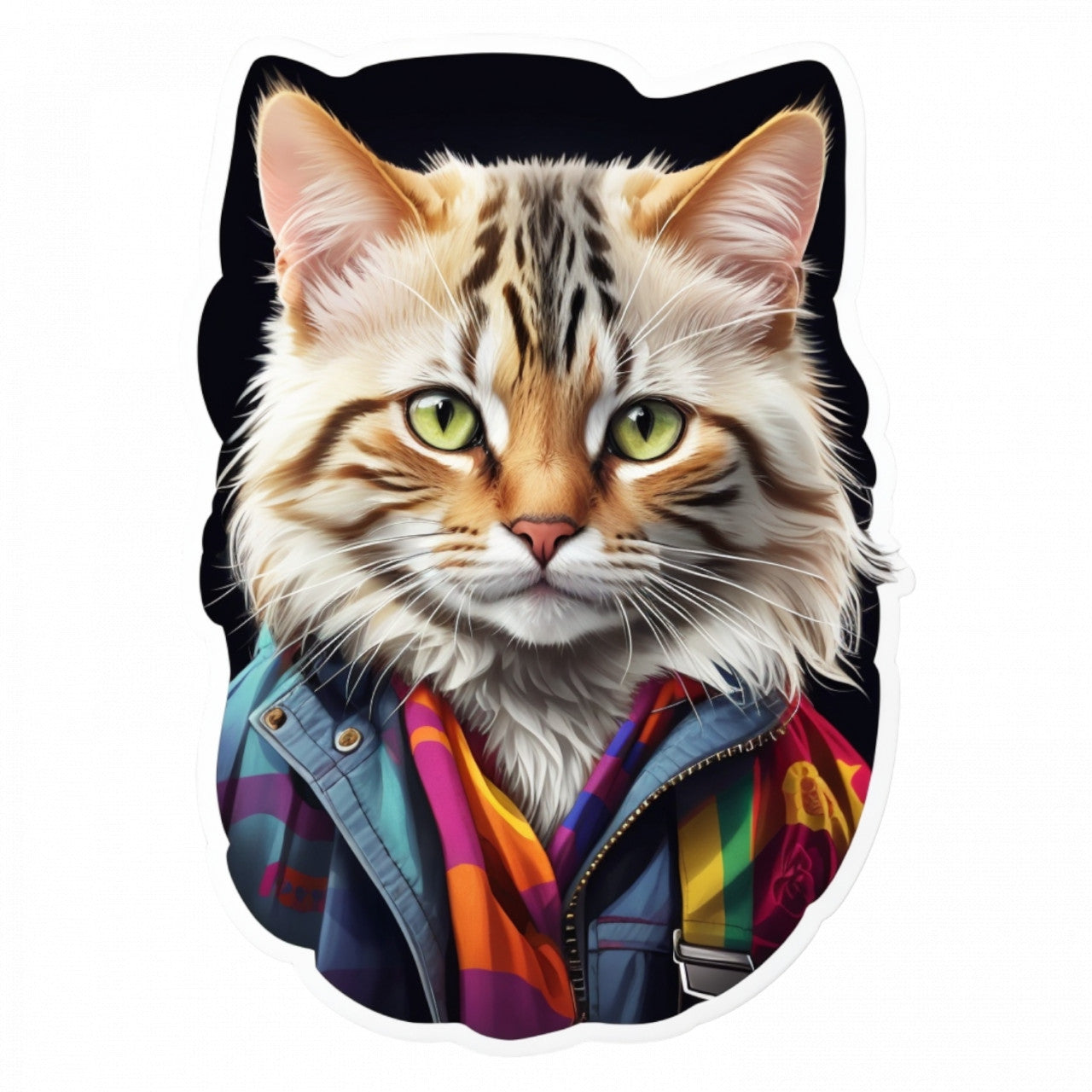 Set 3 bucati, Sticker decorativ, Pisica Pixie bob cu jacheta, Rezistent la apa, NO1076, 6 cm, Multicolor