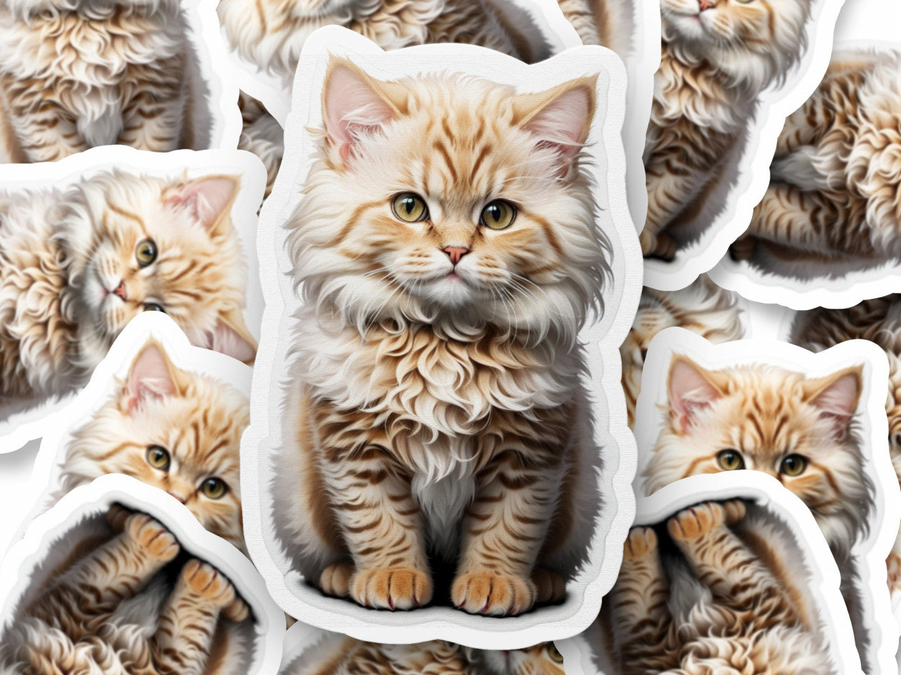 Set 3 bucati, Sticker decorativ, Pisica Selkirk rex, Rezistent la apa, NO1191, 6 cm, Multicolor