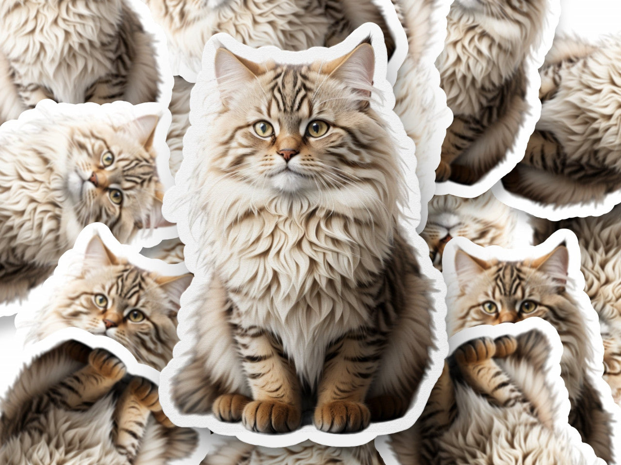 Set 3 bucati, Sticker decorativ, Pisica siberiana, Rezistent la apa, NO1223, 6 cm, Multicolor