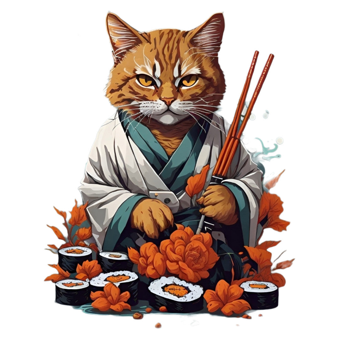 Set 3 bucati, Sticker decorativ, Pisica sushi, Rezistent la apa, NO1696, 6 cm, Multicolor