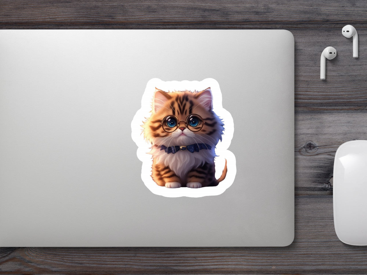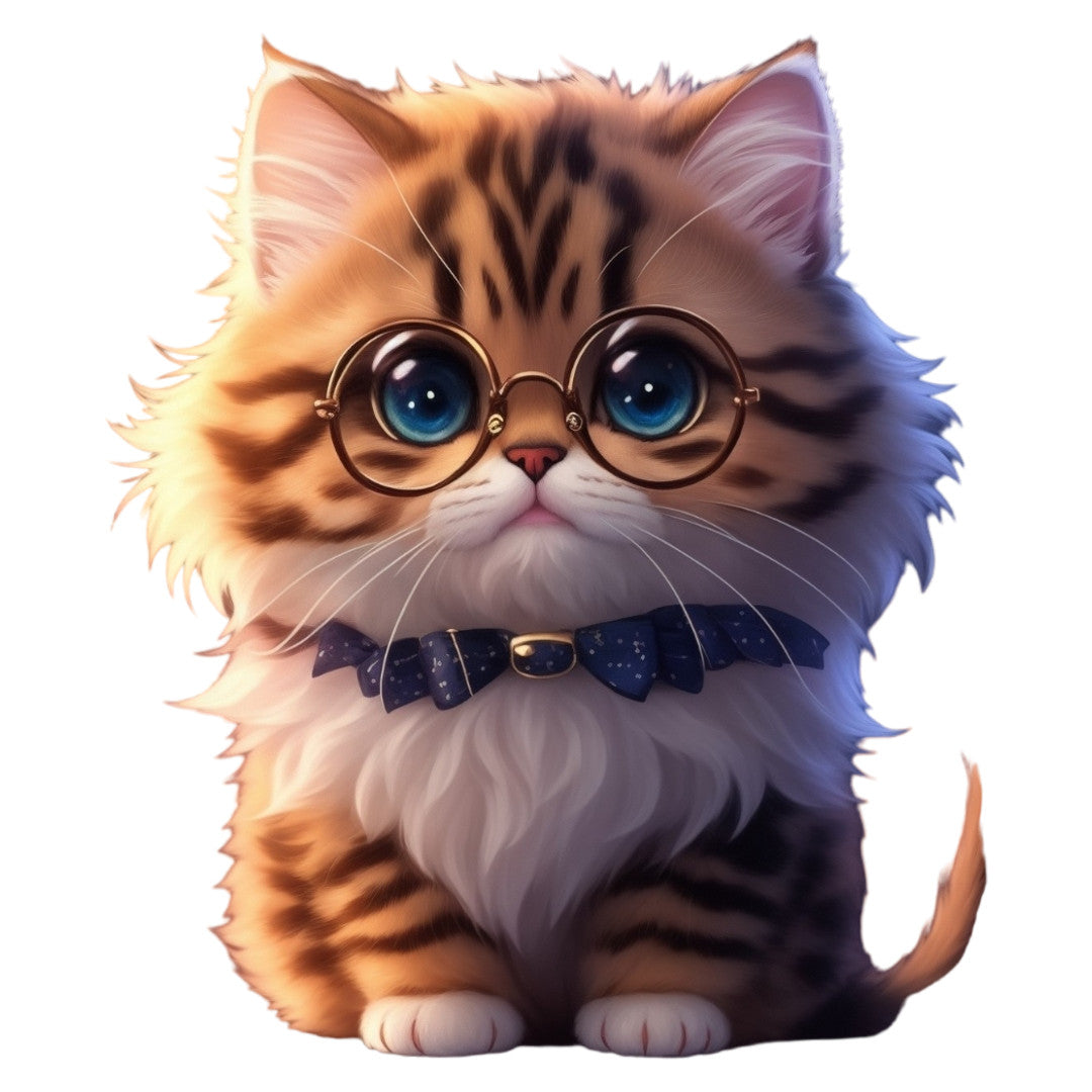 Set 3 bucati, Sticker decorativ, Pisica tigrata cu ochelari, Rezistent la apa, NO1684, 6 cm, Multicolor