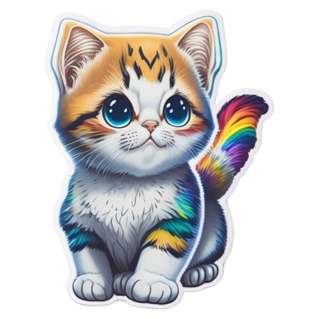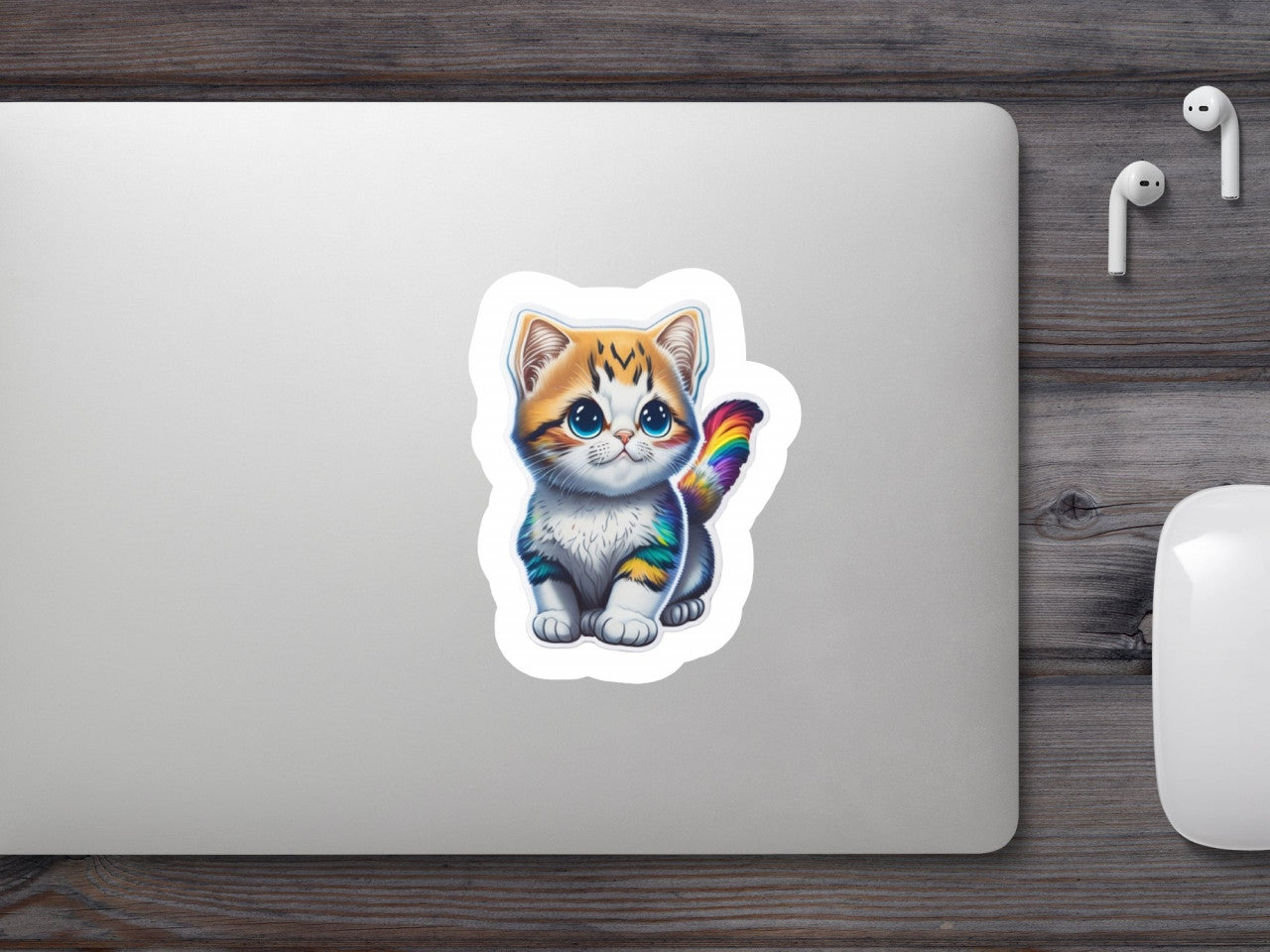 Set 3 bucati, Sticker decorativ, Pisicuta cu coada curcubeu, Rezistent la apa, NO2297, 6 cm, Multicolor