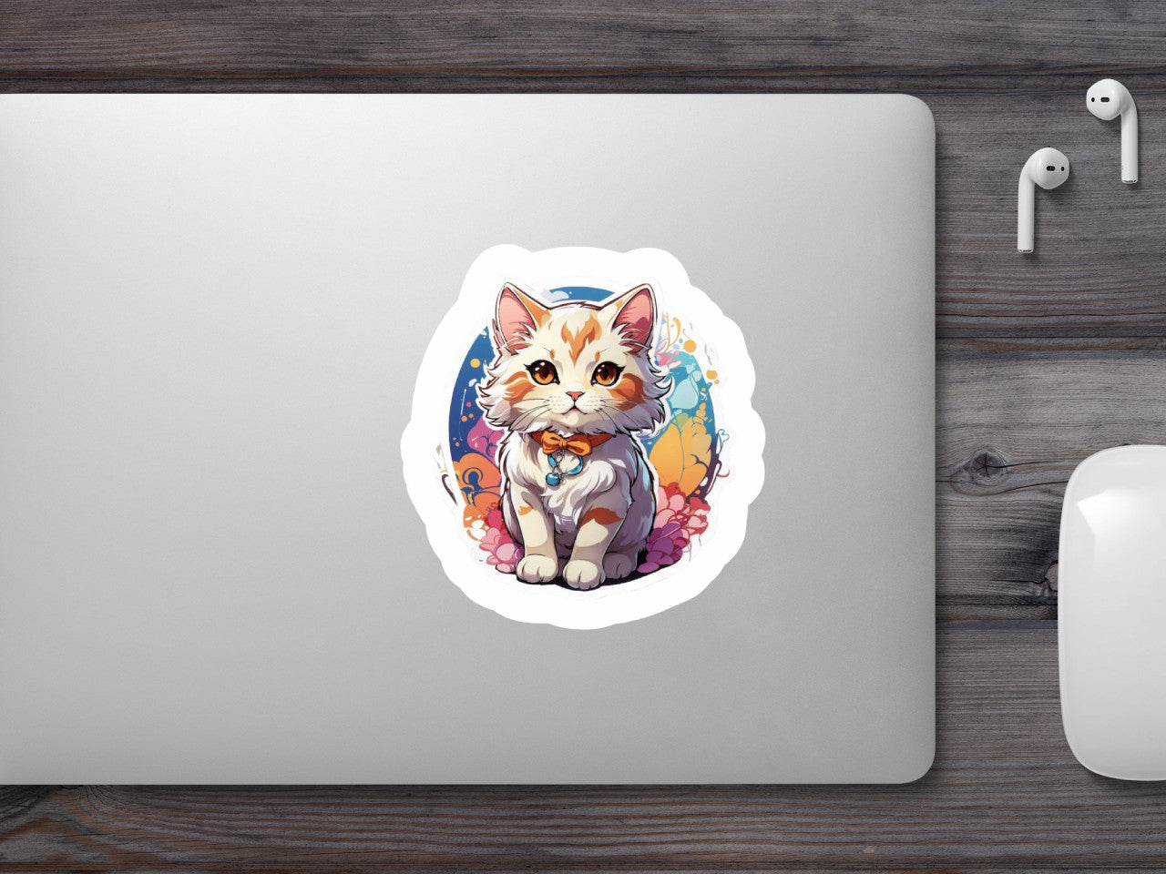Set 3 bucati, Sticker decorativ, Pisicuta cu fundita, Rezistent la apa, NO1867, 6 cm, Multicolor