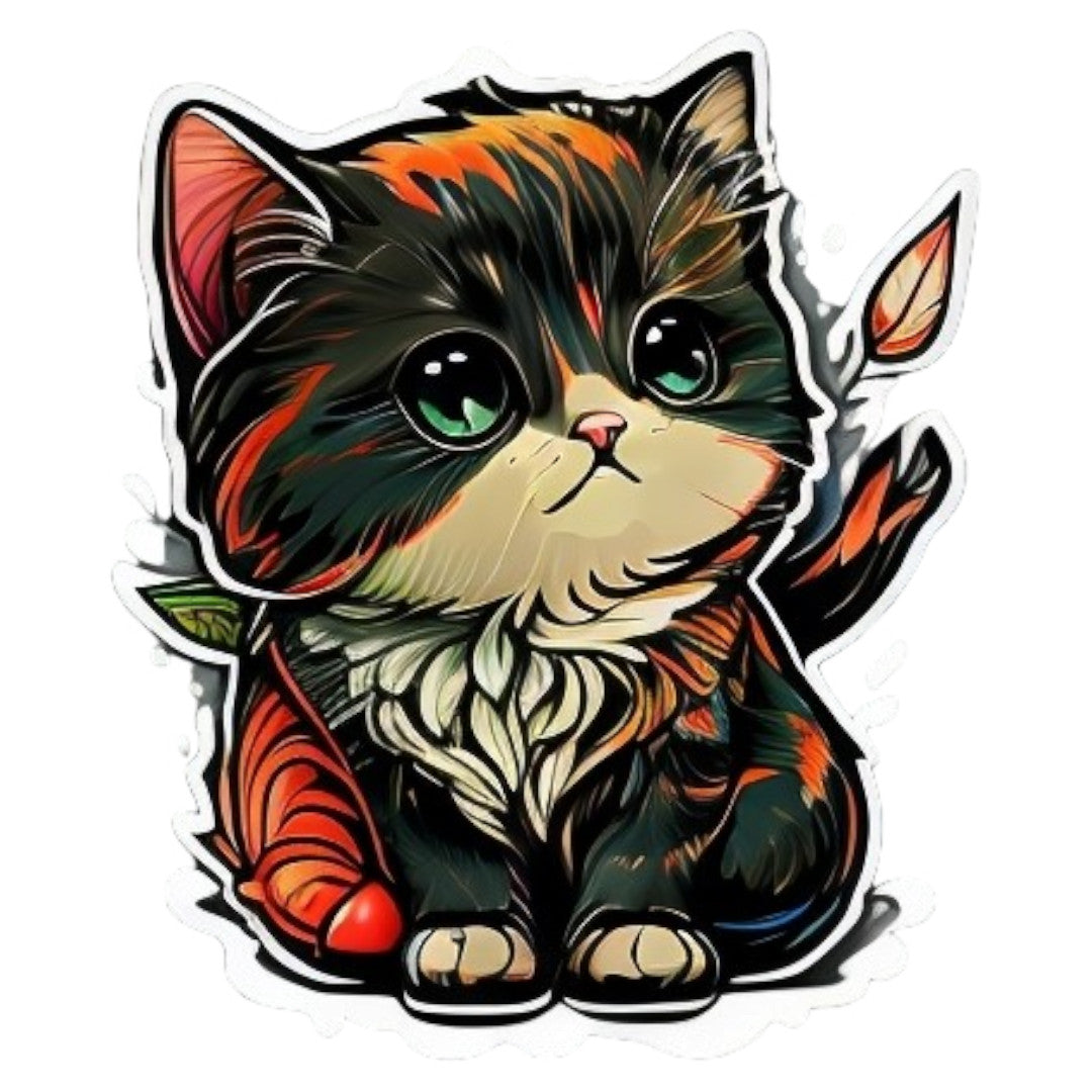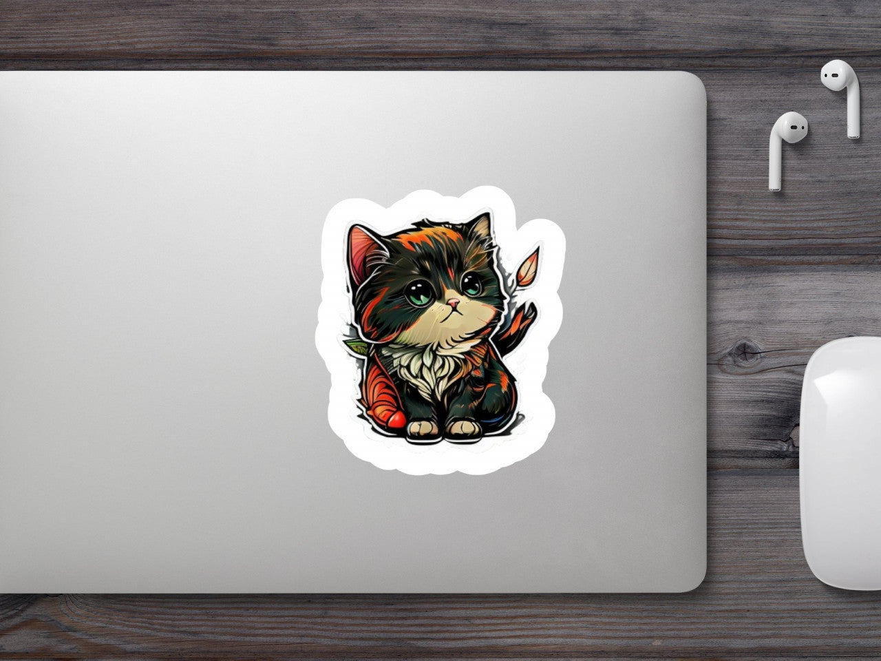 Set 3 bucati, Sticker decorativ, Pisicuta cu ochi tristi, Rezistent la apa, NO2230, 6 cm, Multicolor