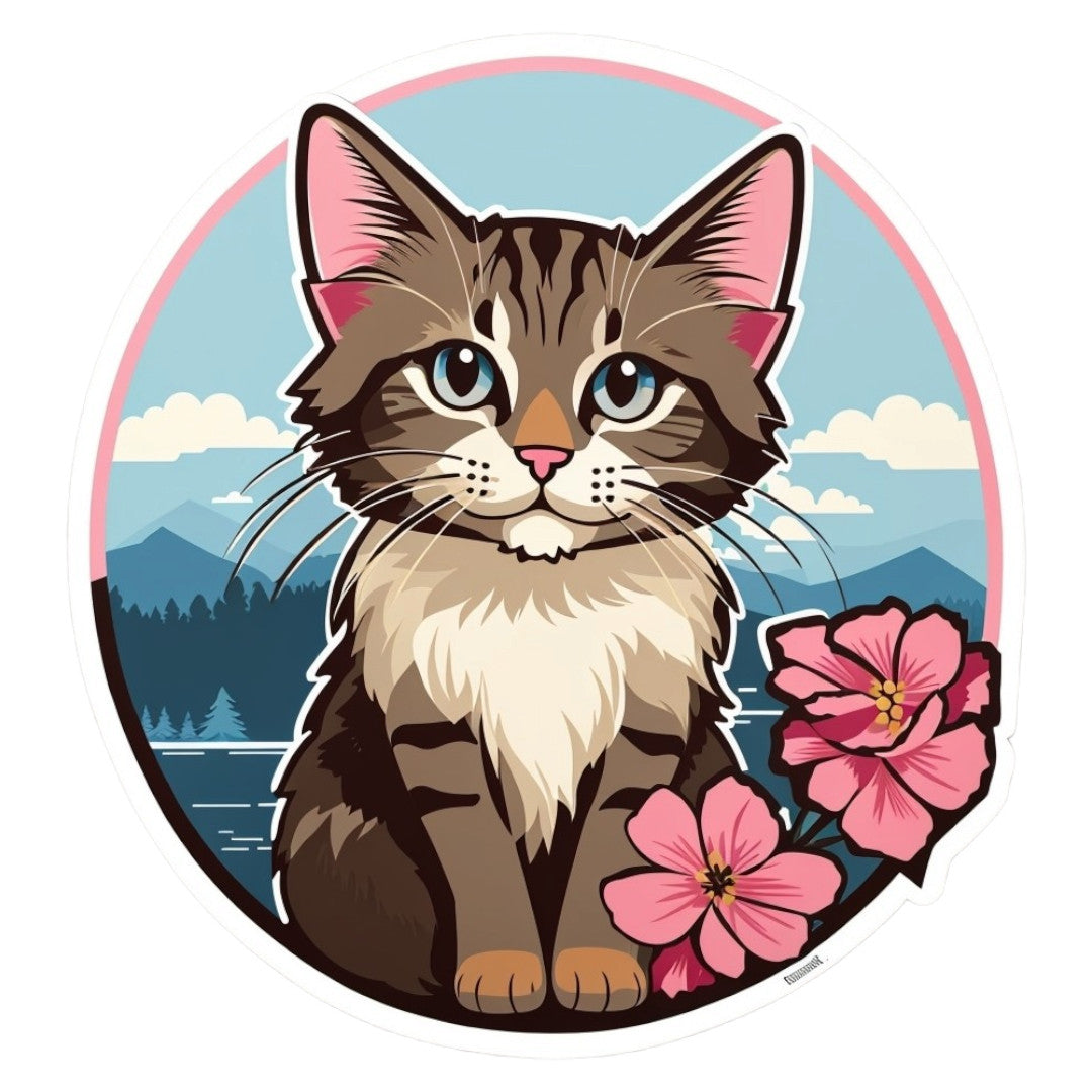 Set 3 bucati, Sticker decorativ, Pisicuta in peisaj, Rezistent la apa, NO2116, 6 cm, Multicolor