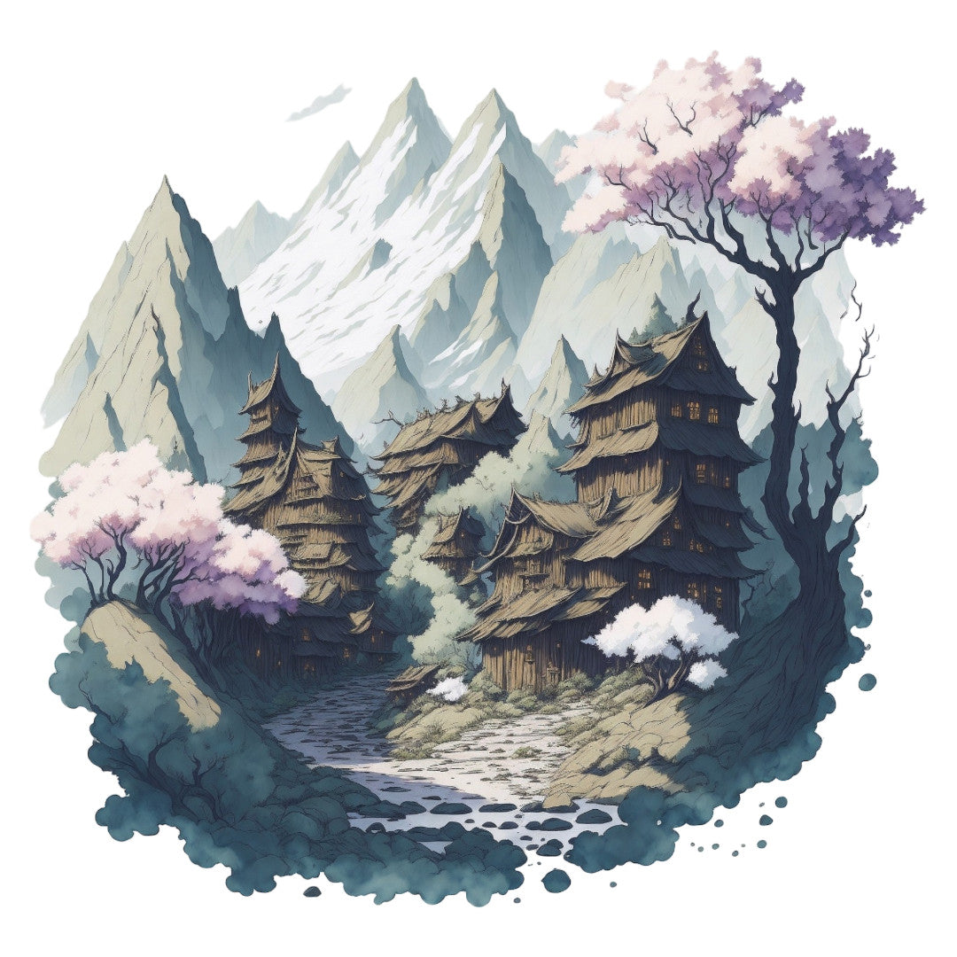 Set 3 bucati, Sticker decorativ, Sat de munte, Rezistent la apa, NO1565, 6 cm, Multicolor