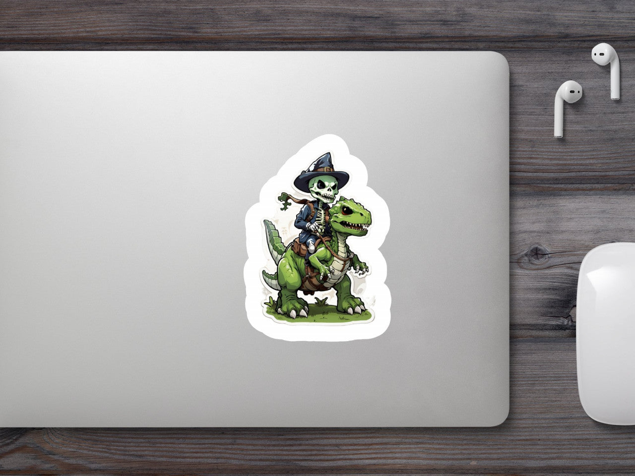 Set 3 bucati, Sticker decorativ, Skeleton pe dinozaur, Rezistent la apa, NO1679, 6 cm, Multicolor