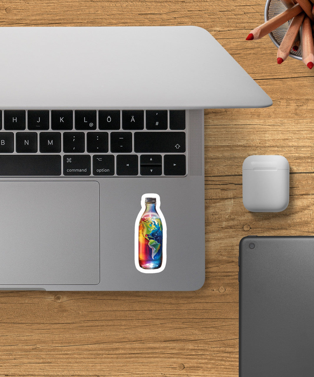 Set 3 bucati, Sticker decorativ, Toata lumea intr-o sticla, Rezistent la apa, NO1500, 6 cm, Multicolor
