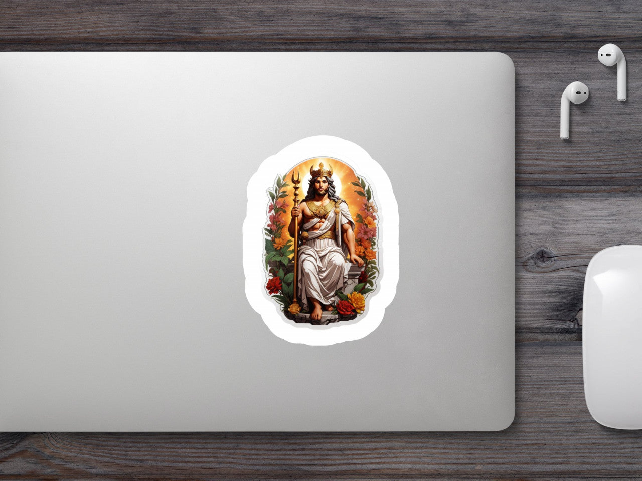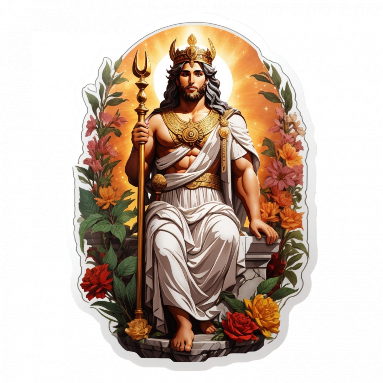 Set 3 bucati, Sticker decorativ, Zeu grec pe tron, Rezistent la apa, NO682, 6 cm, Multicolor