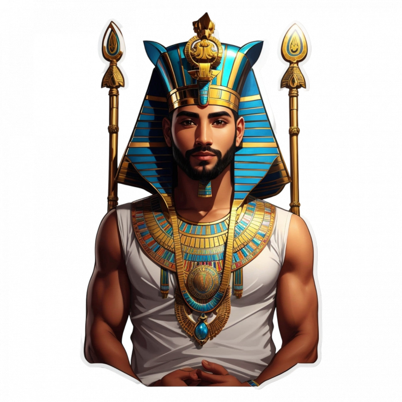 Set 3 bucati, Sticker decorativ, Zeul egiptean Ammon cu sceptru, Rezistent la apa, NO194, 6 cm, Multicolor