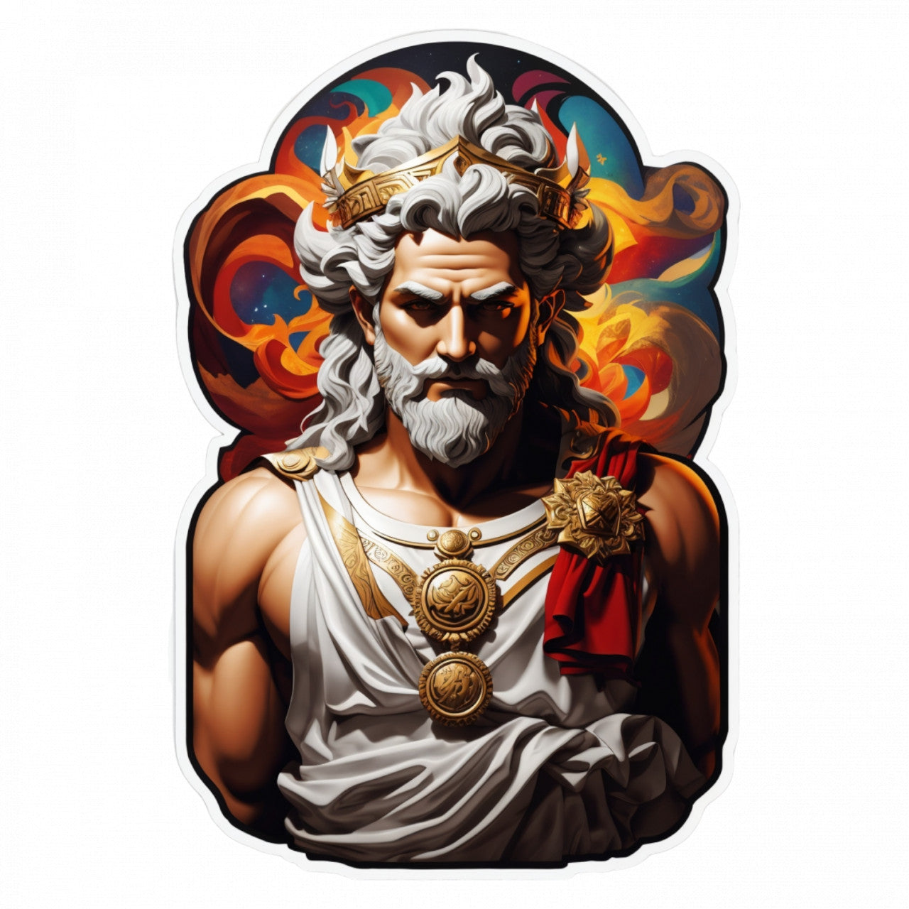 Set 3 bucati, Sticker decorativ, Zeul grec Cronos cu mantie, Rezistent la apa, NO431, 6 cm, Multicolor