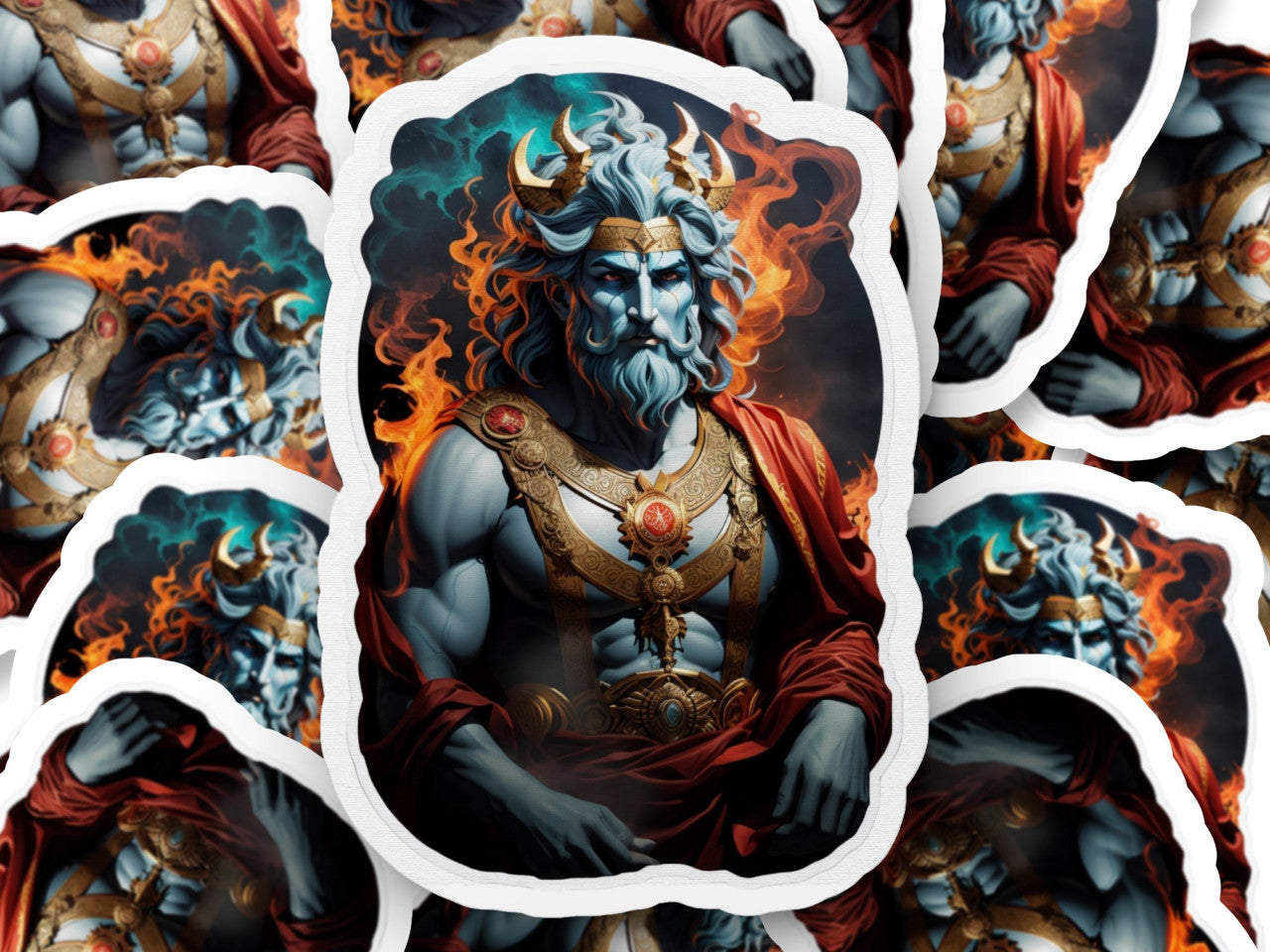 Set 3 bucati, Sticker decorativ, Zeul grec Hades cu coarne, Rezistent la apa, NO658, 6 cm, Multicolor
