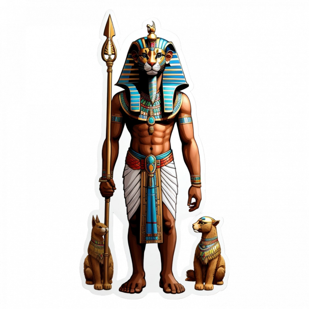 Set 3 bucati, Sticker decorativ, Zeul Taweret cu sceptru, Rezistent la apa, NO1290, 6 cm, Multicolor