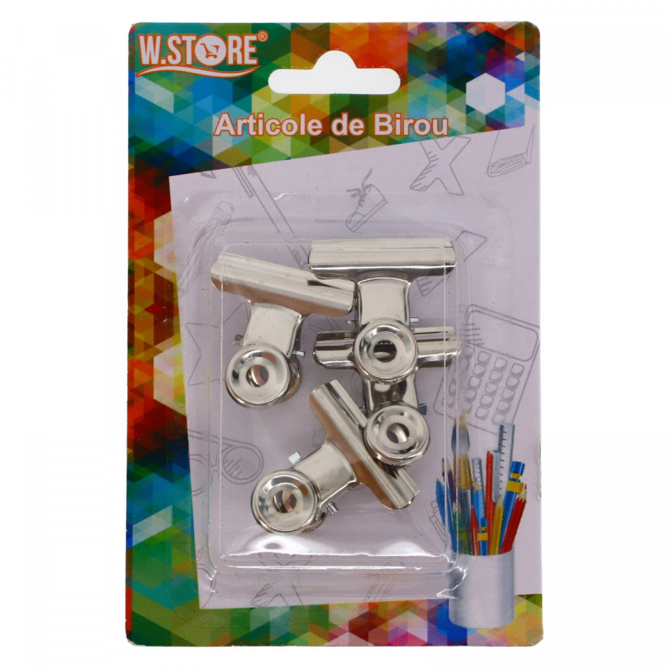 Set 4 buc, clema birou, Metal, 3 cm, Argintiu