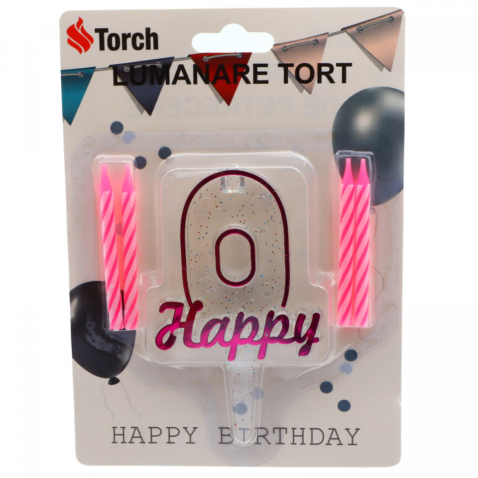 Set 4 buc, Lumanare aniversara,cu suport in forma de Cifra 0, pentru tort, Roz