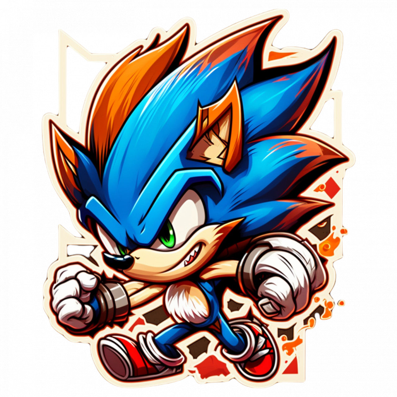 Set 4 bucati, Sticker decorativ, Ariciul Sonic in viteza, Rezistent la apa, NO7984, 10 cm, Multicolor