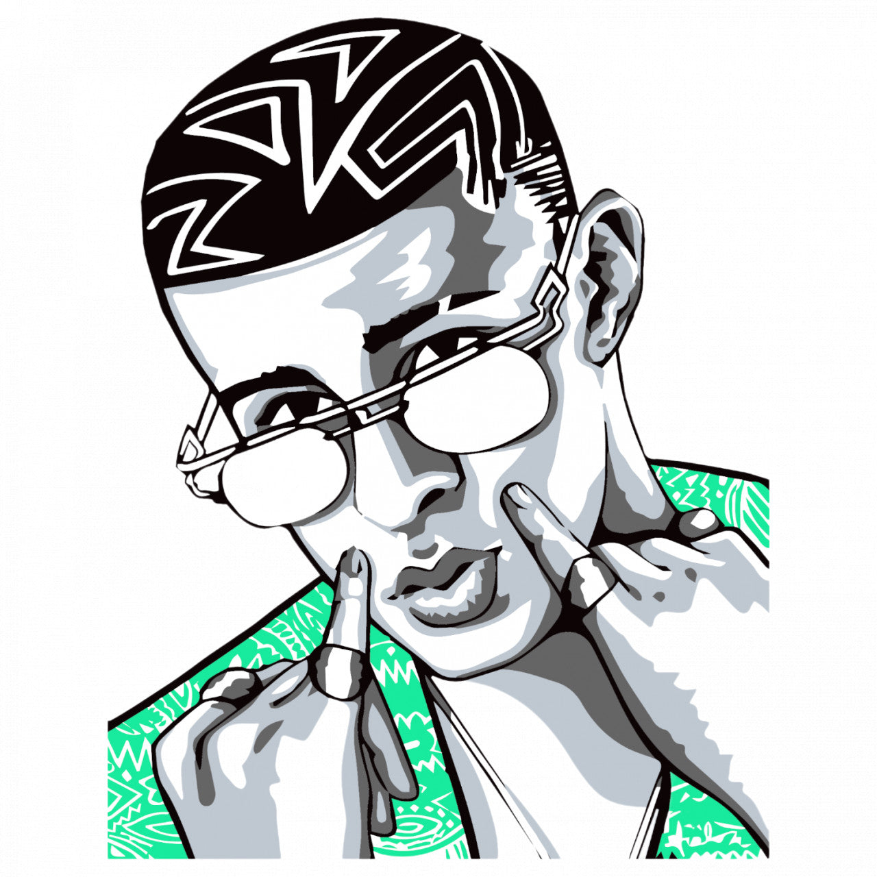 Set 4 bucati, Sticker decorativ, Bad Bunny, Rezistent la apa, NO8046, 10 cm, Multicolor