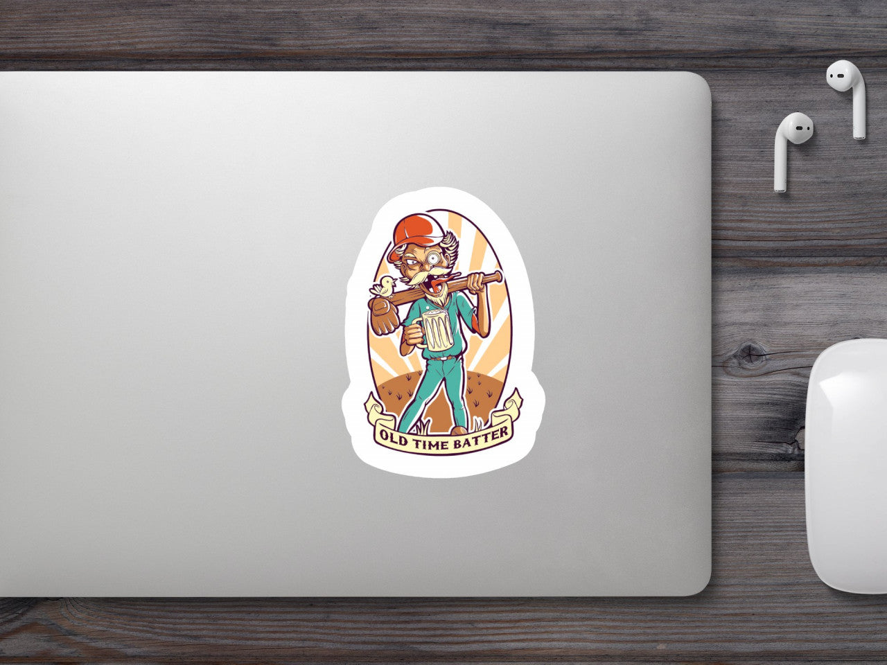 Set 4 bucati, Sticker decorativ, Batran care joaca baseball, Rezistent la apa, NO8074, 10 cm, Multicolor