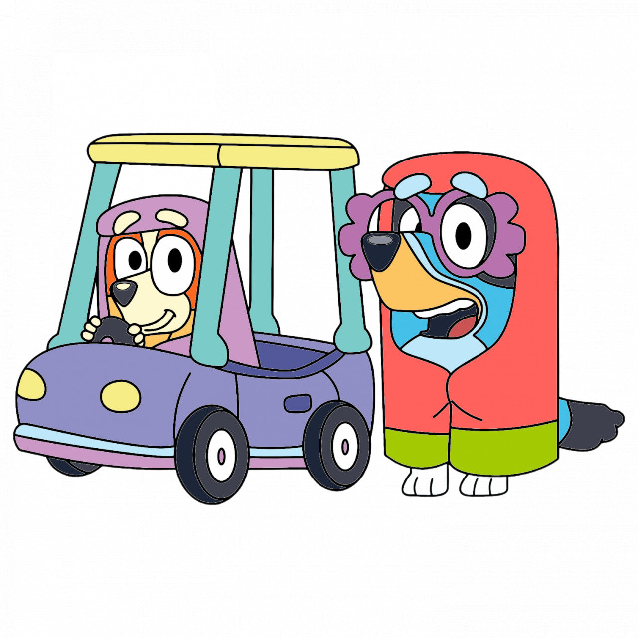 Set 4 bucati, Sticker decorativ, Bluey Grannies in masina, Rezistent la apa, NO8591, 10 cm, Multicolor