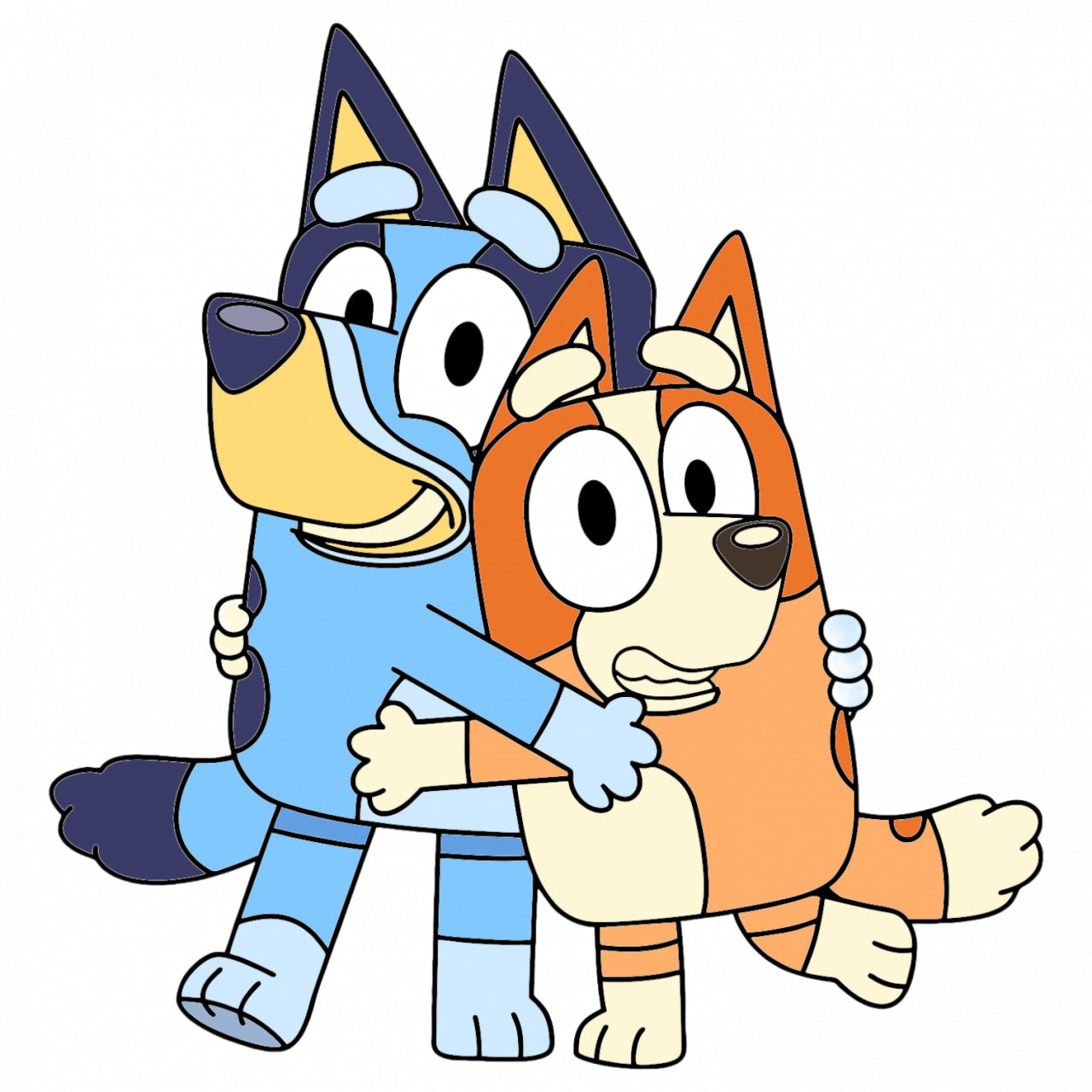 Set 4 bucati, Sticker decorativ, Bluey si Bingo Heeler frati, Rezistent la apa, NO8598, 10 cm, Multicolor
