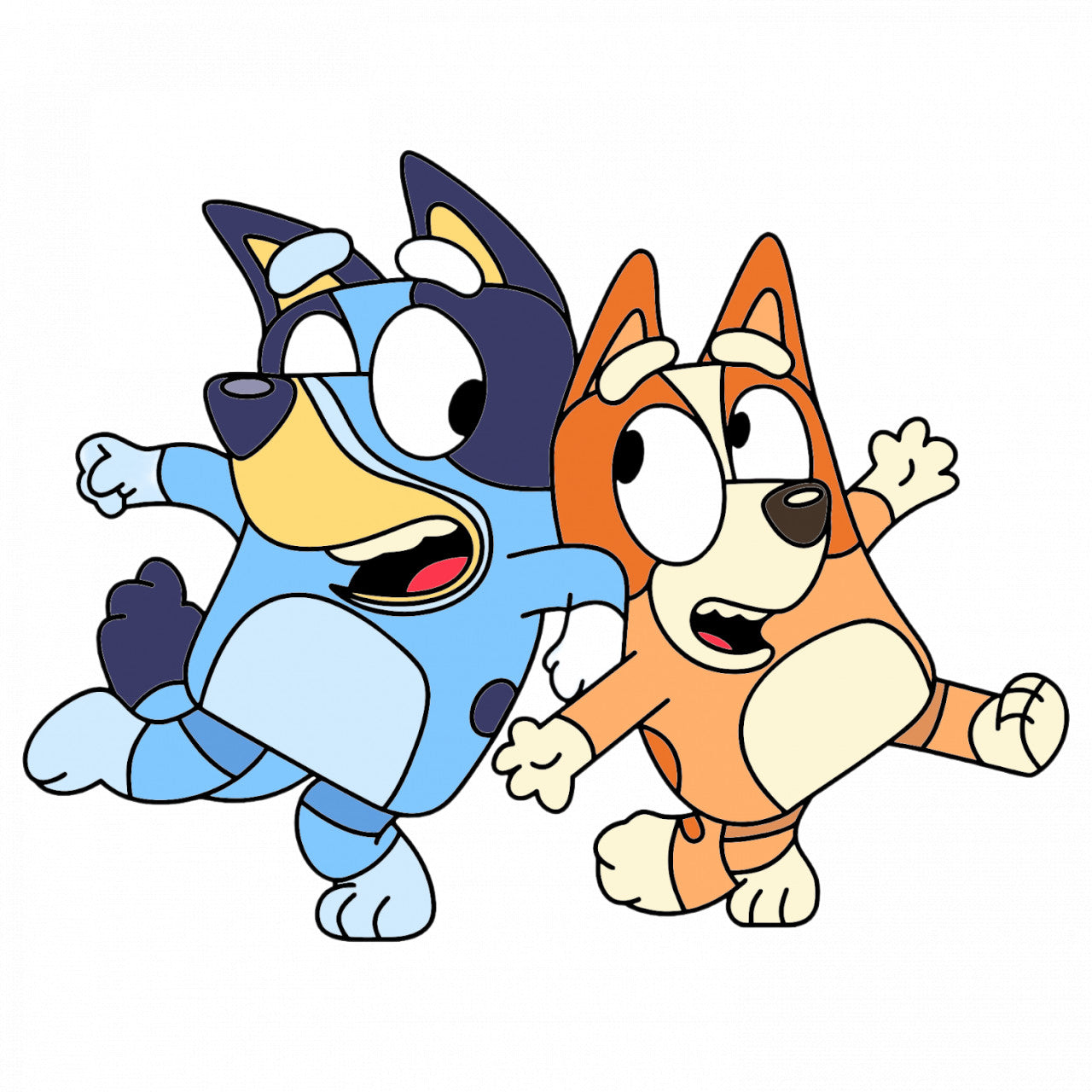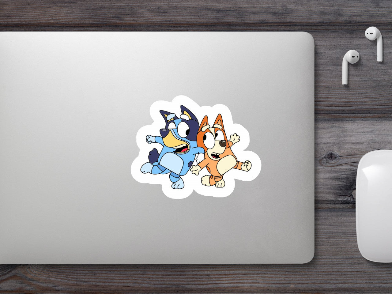 Set 4 bucati, Sticker decorativ, Bluey si Bingo la joaca, Rezistent la apa, NO8600, 10 cm, Multicolor