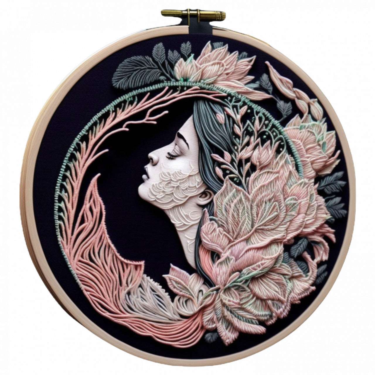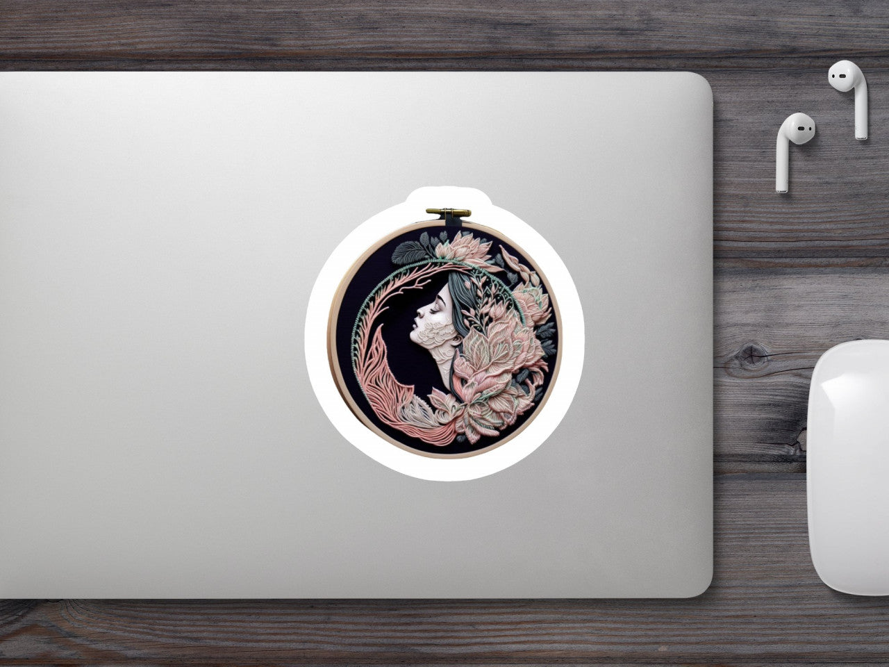 Set 4 bucati, Sticker decorativ, Broderie cu chip de fata, Rezistent la apa, NO8646, 10 cm, Multicolor