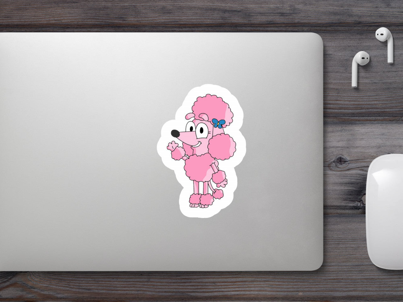 Set 4 bucati, Sticker decorativ, Coco Bluey cu fundita, Rezistent la apa, NO8847, 10 cm, Multicolor