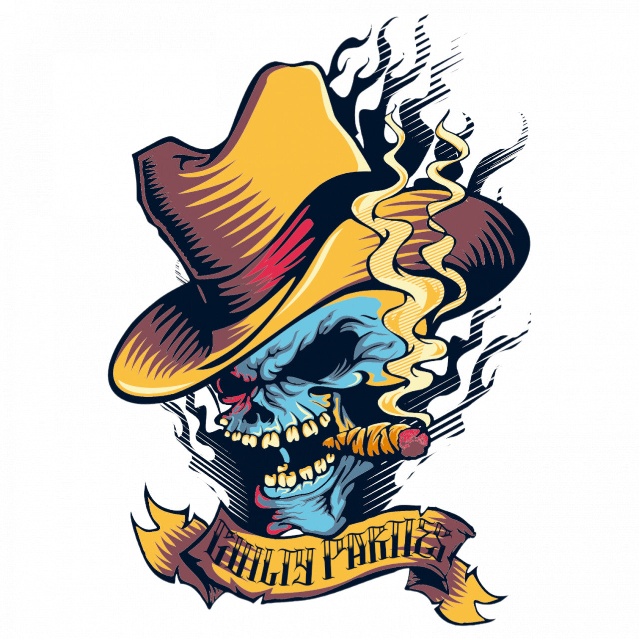 Set 4 bucati, Sticker decorativ, Craniu cu palarie, Rezistent la apa, NO8925, 10 cm, Multicolor